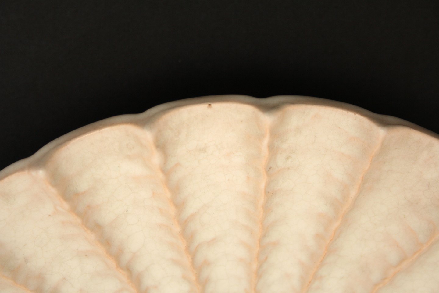 Michael Andersen, Bornholm, stort hvid matglaseret fad med riller. Formnr. 9711. 3 chip afslag i glasuren. Diameter 29,5 cm. Højde 7 cm. Pris: SOLGT