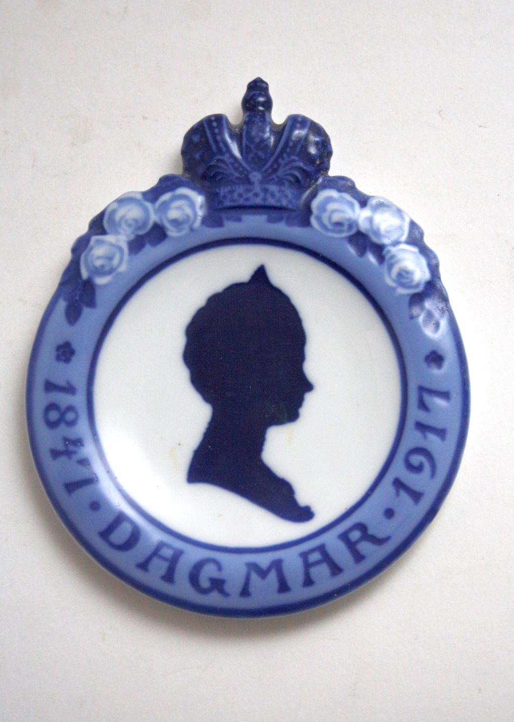 Royal Copenhagen, Mindeplaquette Kejserinde Dagmar 1847-1917. Udgivet i anledning af Dagmars 70 års fødselsdag. Formnr 132. 14,5 x 11,5 cm. I. sortering. Anelse brugsslid på hagen. Pris: SOLGT