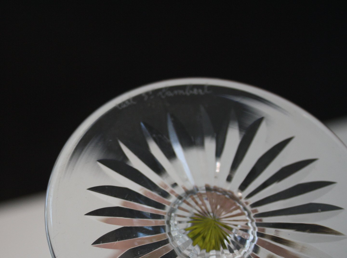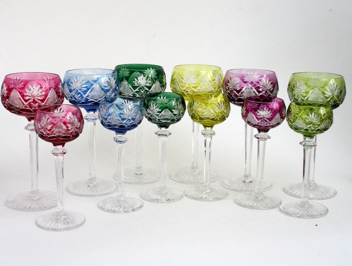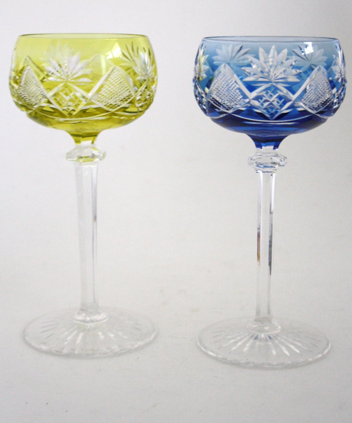 Val st. Lambert, Belgien, Berncastel farvede krystal glas. Slibninger i kumme, stilk og bund. Signeret Val st. Lambert i bund på vinglassene. Alle i flot stand.
