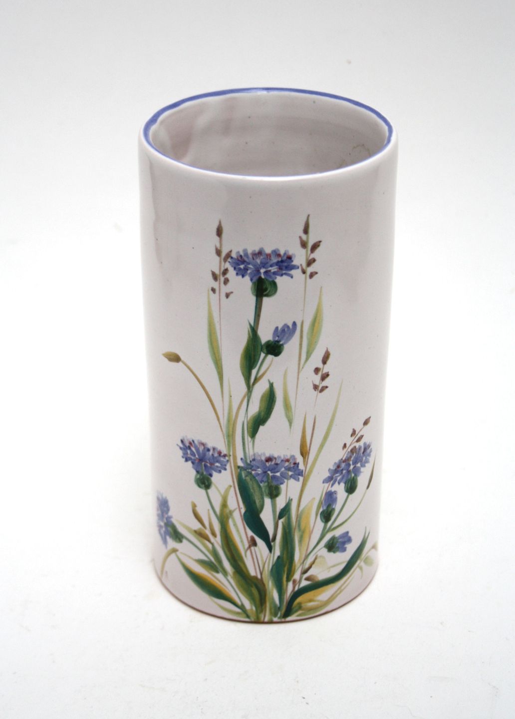 Torben keramik, Cylinderformet vase med kornblomster. Formnr. B 114. Signeret Torben Danmark. Højde 19 cm. Diameter 9,5 cm. Pris: SOLGT
