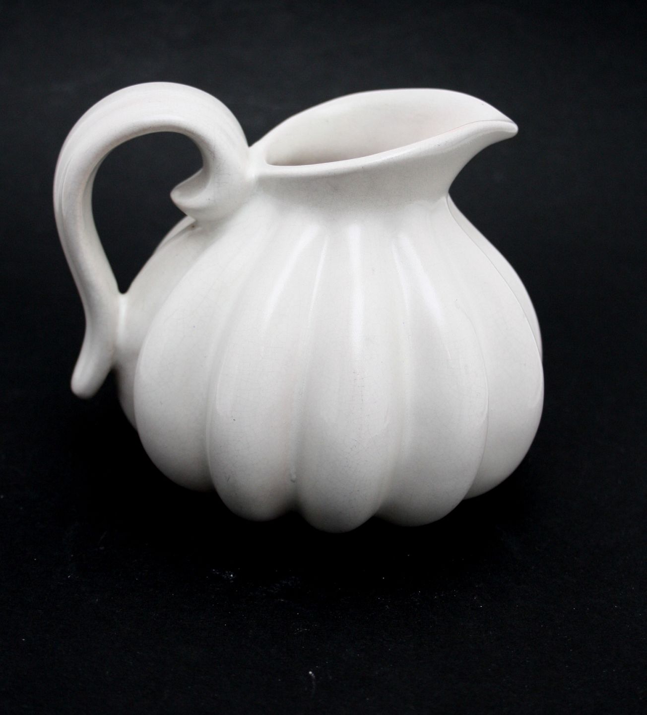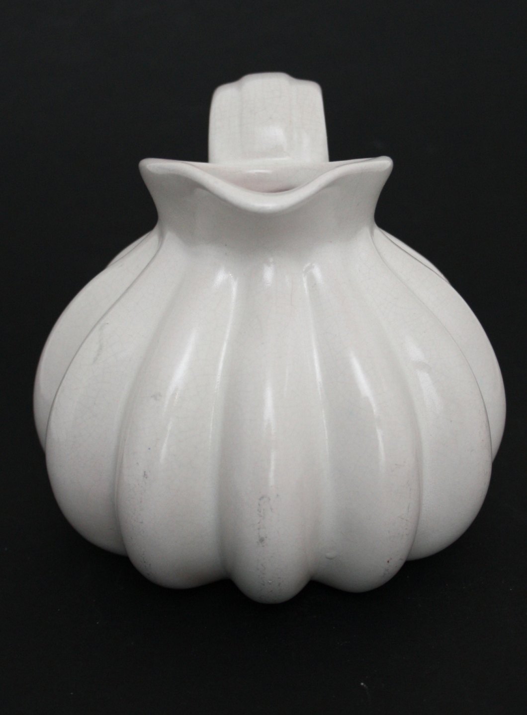 Michael Andersen, Bornholm, Hvid blank glasseret kande. Formnr. 4627. Højde 11,5 cm. Længde 15 cm. Perfekt stand. Pris: SOLGT