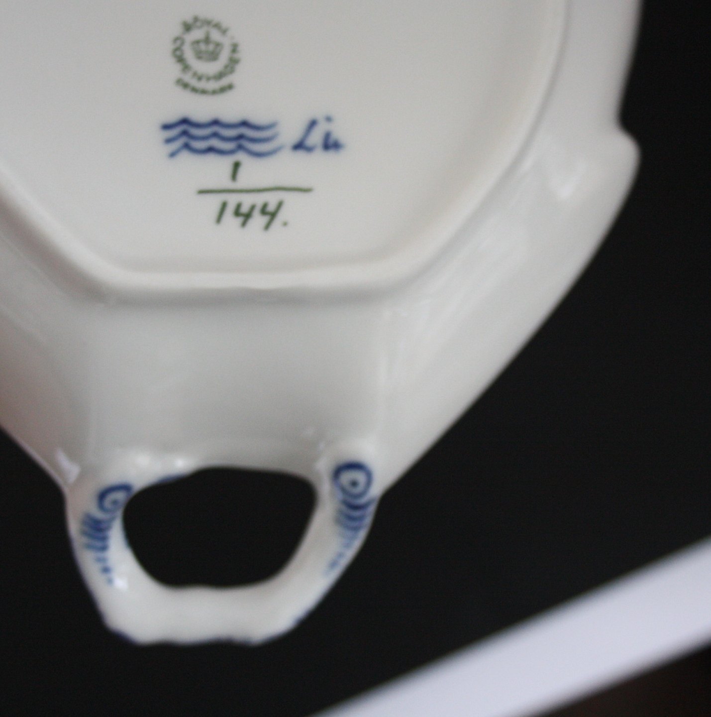 Royal Copenhagen, Musselmalet riflet Bladassiet. Formnr. 1-144. Længde 22,5 cm. Bredde 17,5 cm. Perfekt stand. I. sortering. Pris: SOLGT