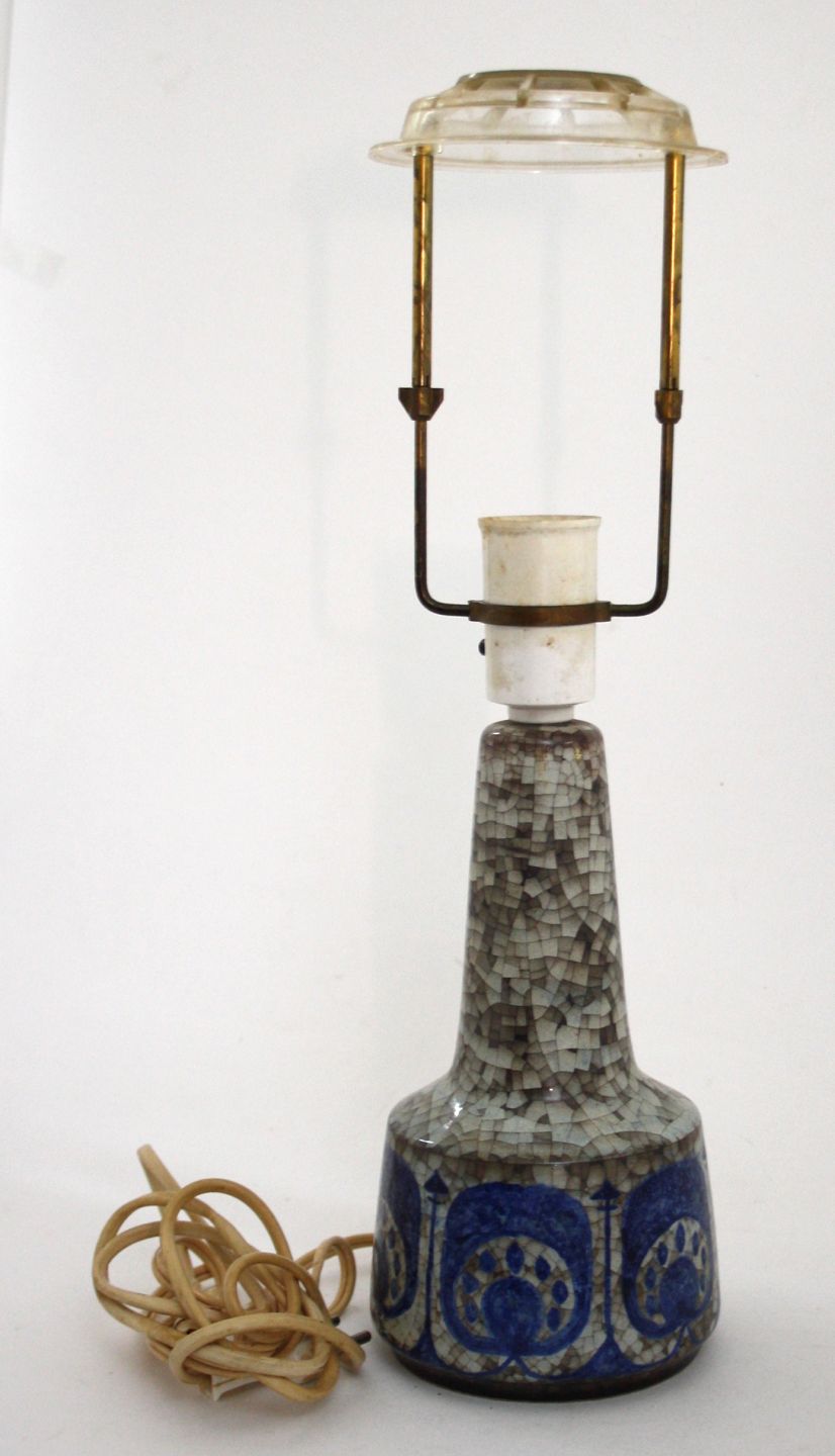 Michael Andersen, Bordlampe i blågrå krakelé glasur designet af Marianne Starck. Formnr. 8609. Højde incl. fatning 28 cm. Perfekt stand. Pris: SOLGT