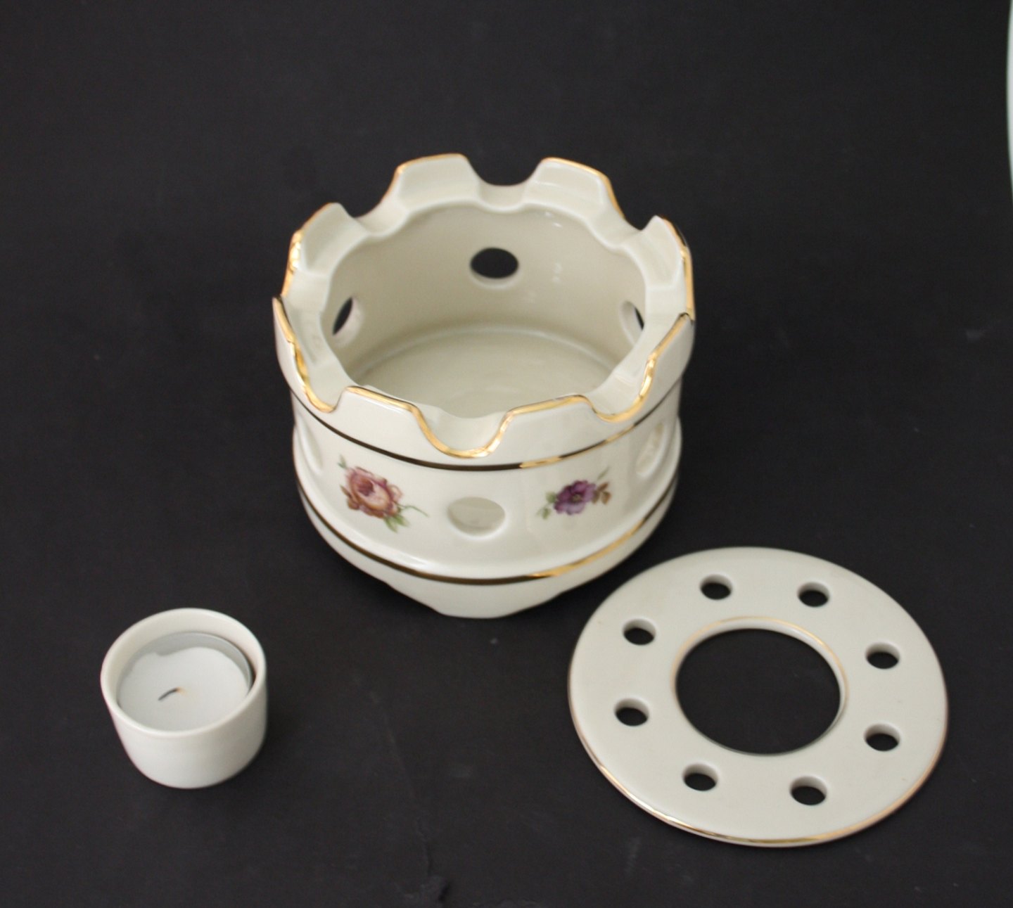 Kjøbenhavns Porcellains Maleri, Rosenborg fyrfad tevarmer. Flot stand. Højde 9 cm. Diameter 13 cm. Pris: SOLGT