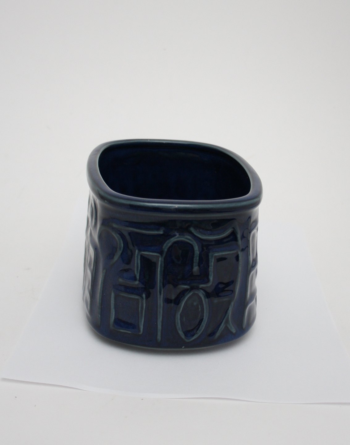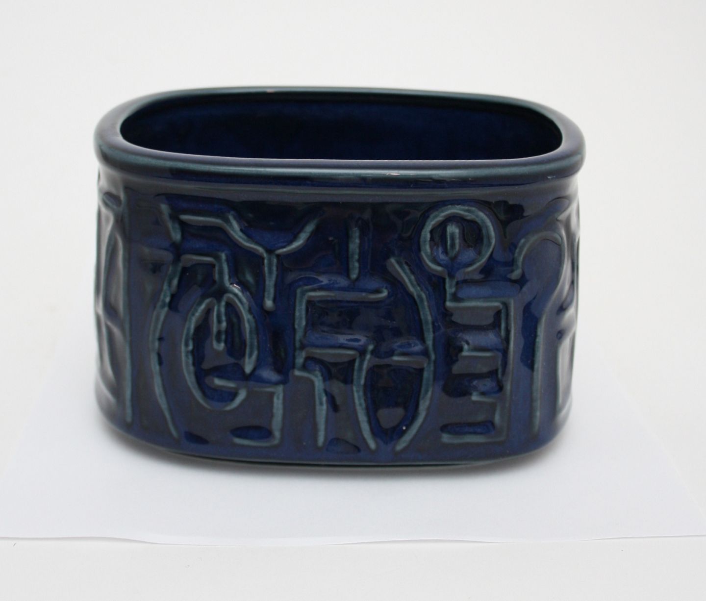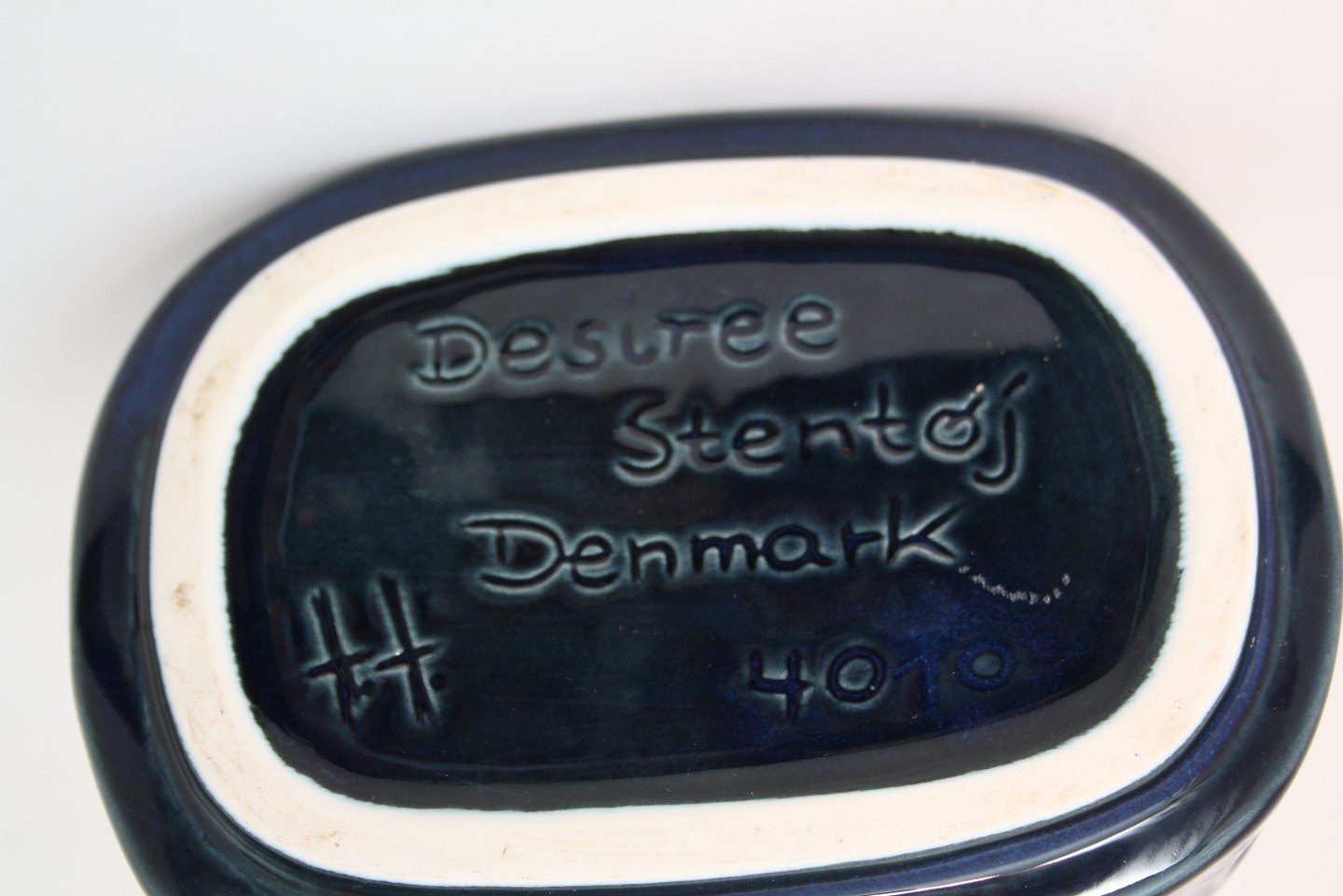 Desiree stentøj Denmark, Aflang skål eller vase i blå glasur. Formnr. 40. Højde 10 cm. Længde 16 cm. Bredde 12 cm. God stand. Pris: SOLGT