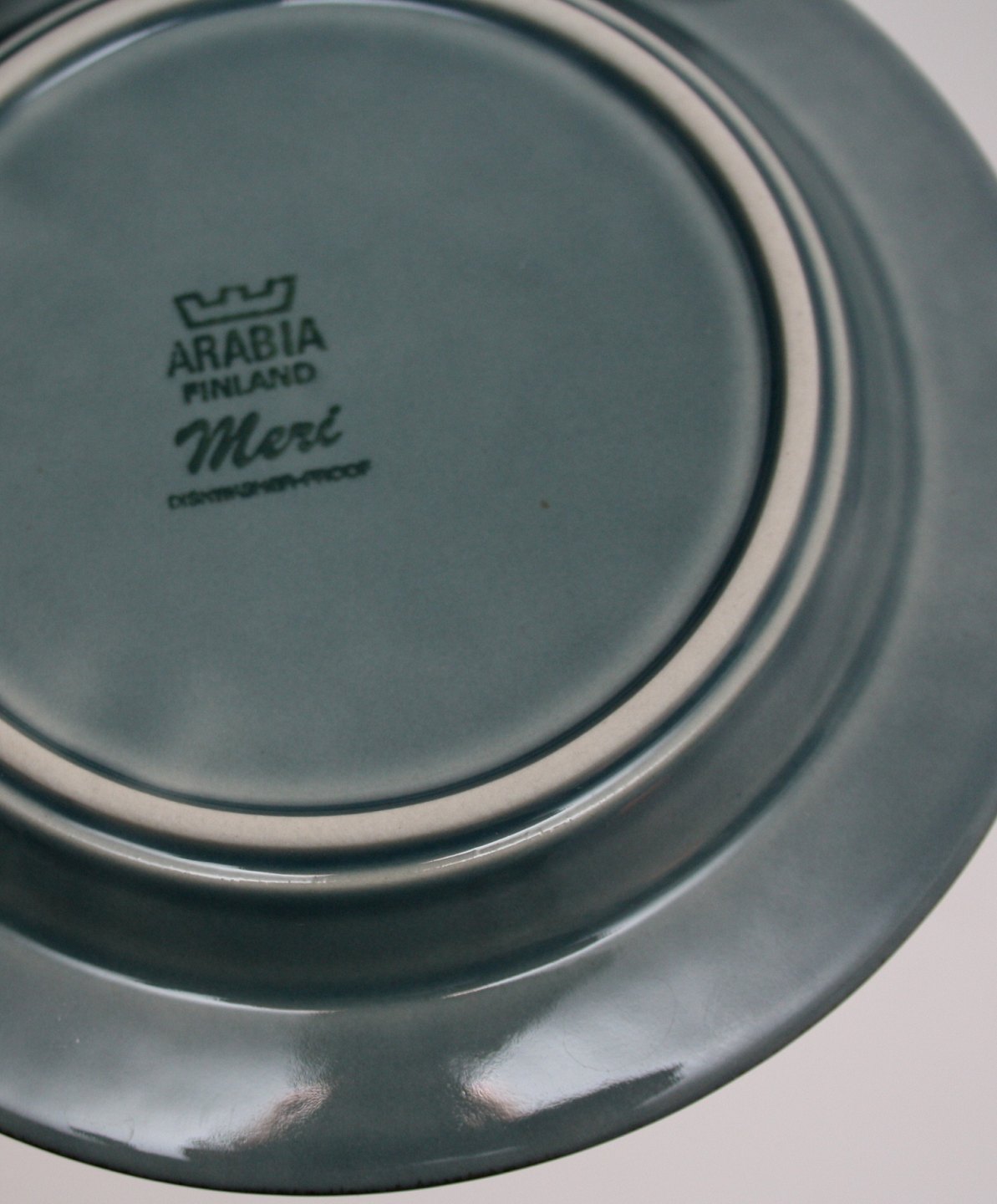 Meri, Arabia, designer Ulla Procope. Middagstallerken. Diameter 25,5 cm. God stand. Pris: SOLGT Frokosttallerken. Diameter 20,5 cm. Lettere brugsslid. Pris: SOLGT