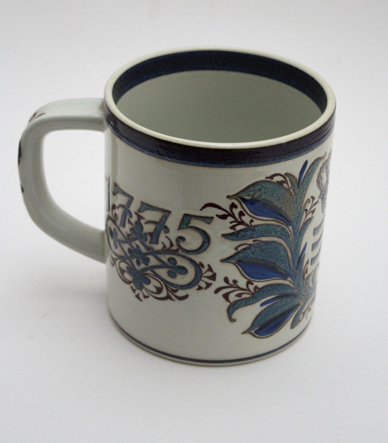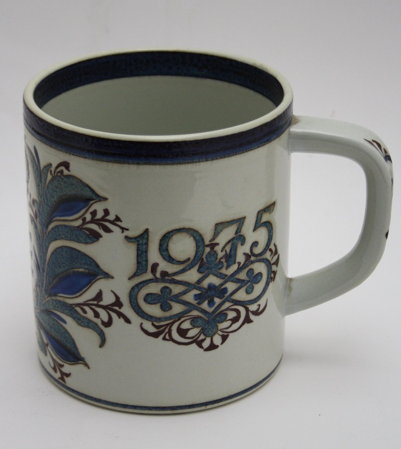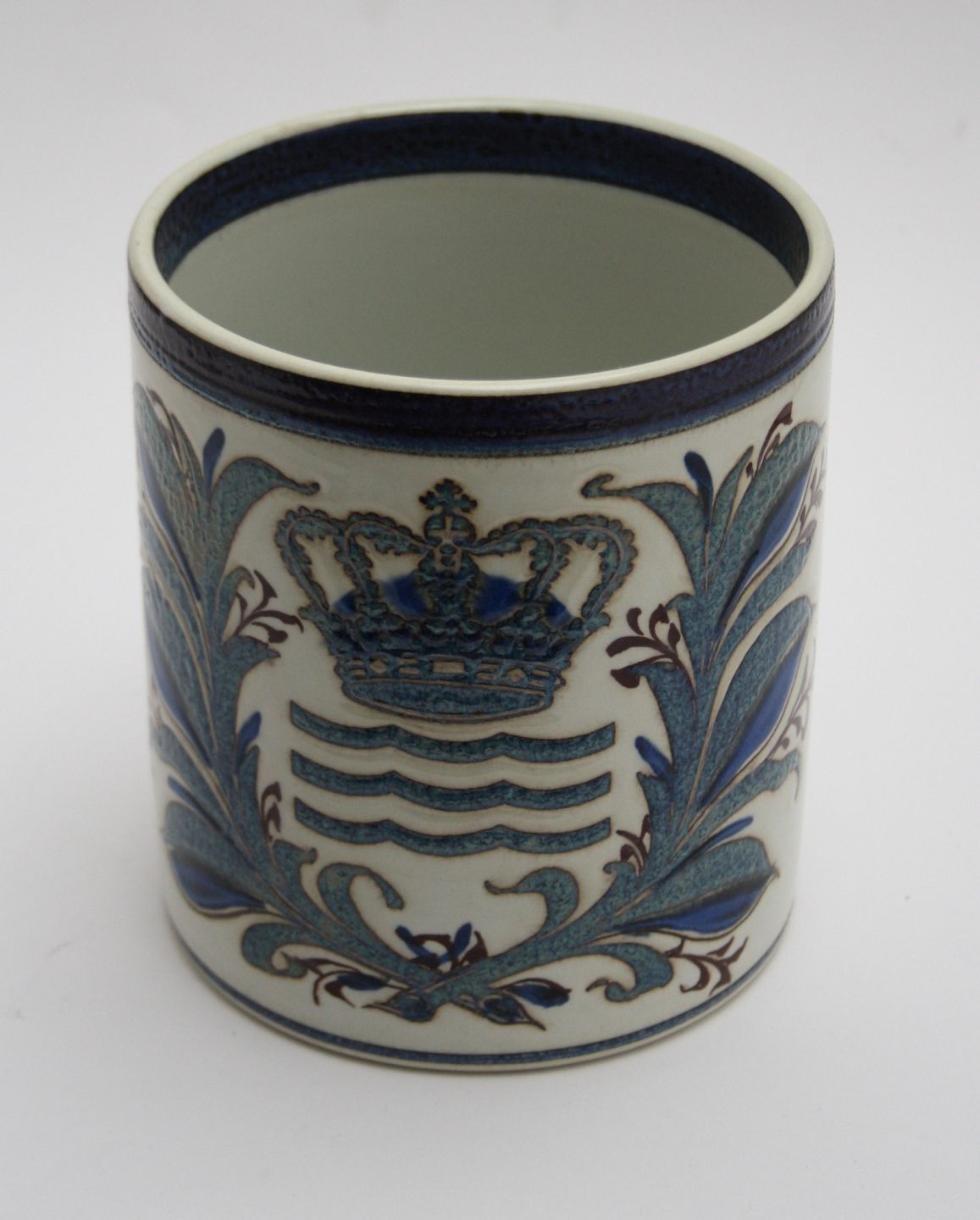 Royal Copenhagen, 200 års jubilæum for Royal Copenhagen 1775-1975 Ekstra stort krus i glaseret fajance. Designet af Nils Thorsson. Højde 14 cm. Diameter 12,5 cm. I. sortering. Pris: SOLGT