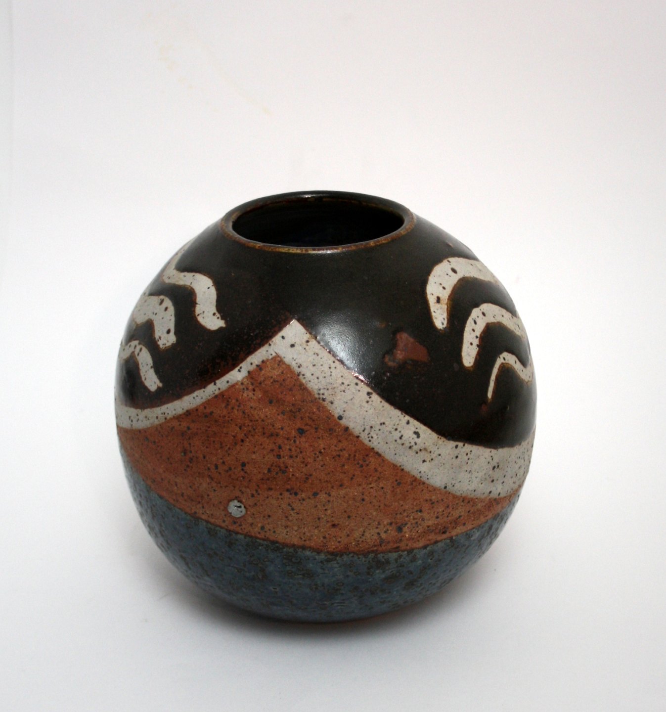 Rund vase, højde 18 cm. diameter 18 cm. signeret, hel og fin stand. Pris: SOLGT