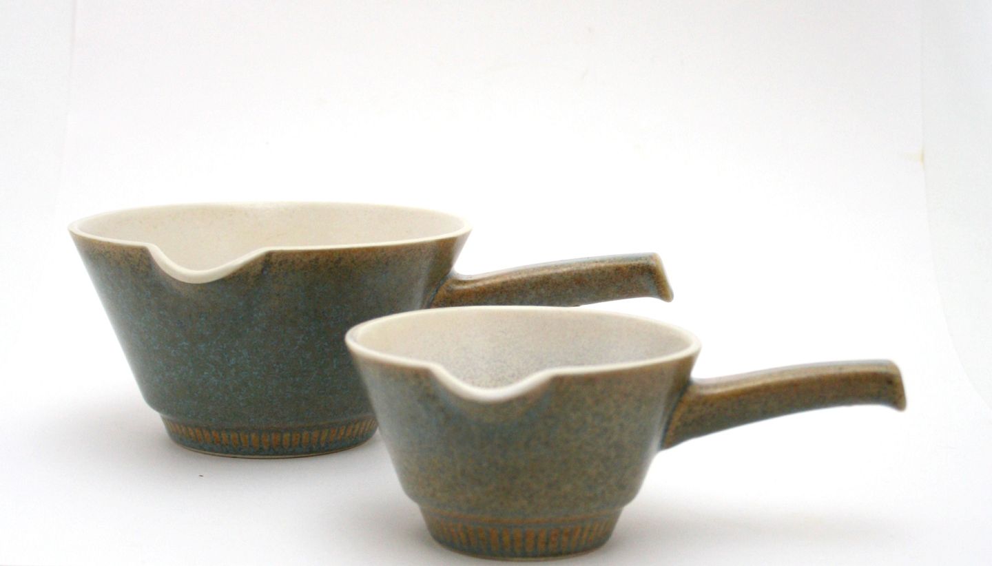 Mindre kasserolle/sovsekande. Højde 6,5 cm. Længde 17,5 cm. Flot stand. Pris: SOLGT