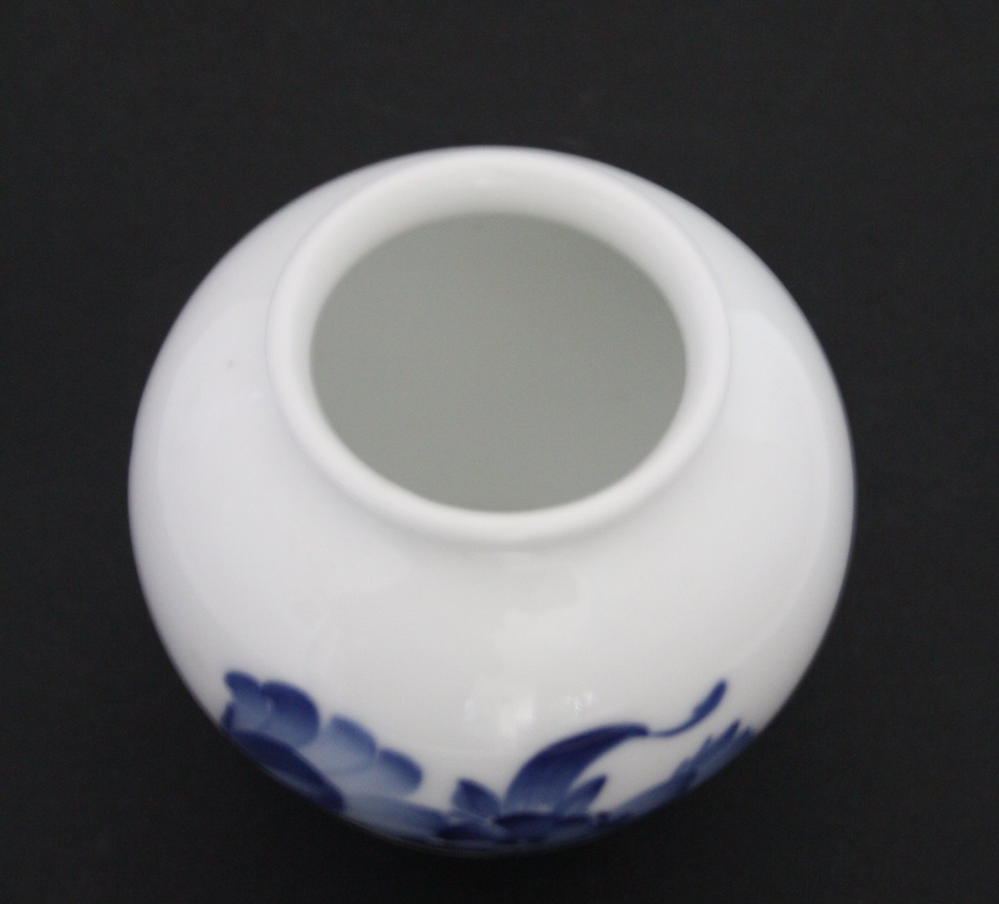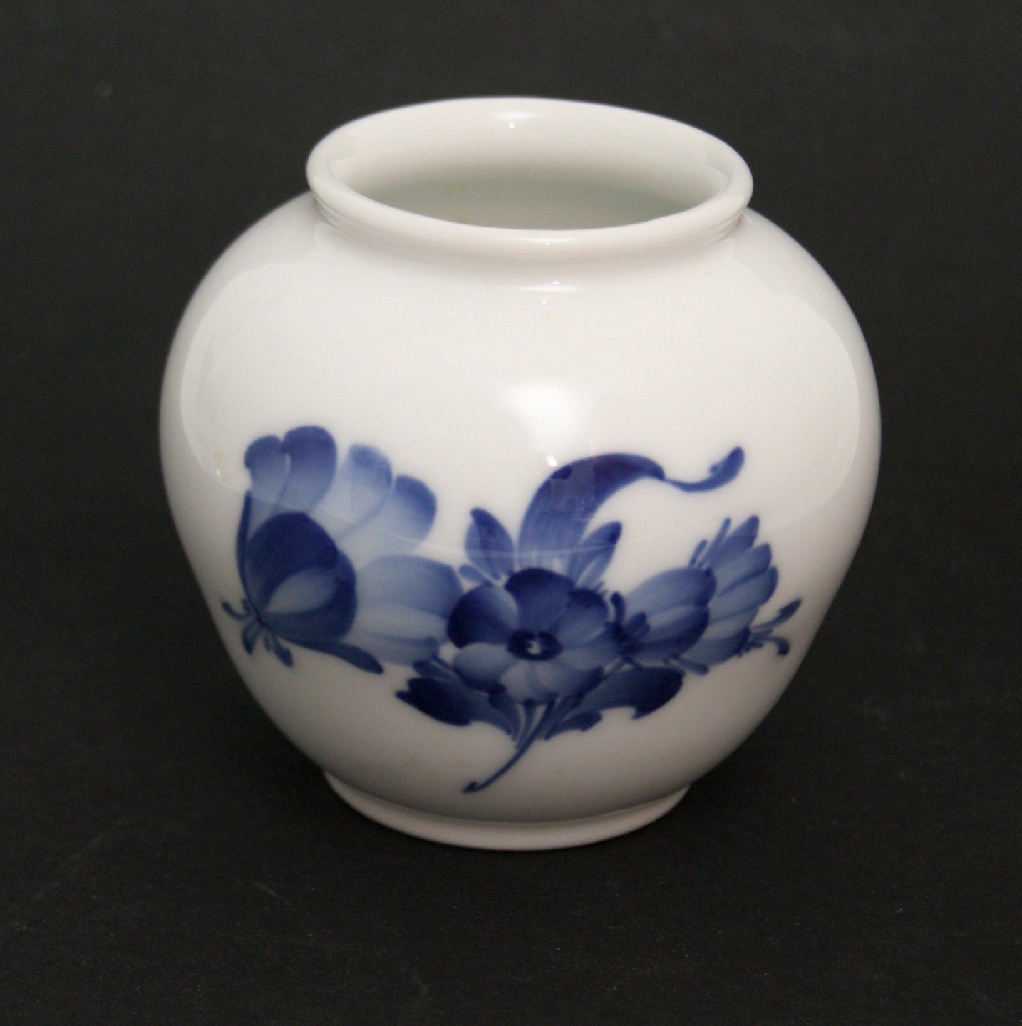 Royal Copenhagen, Blå Blomst flettet, buttet vase. Formnr. 10/8257. Højde 10 cm. Diameter 10 cm. I. sorteringmen med en mikroskopisk sort prik Pris: SOLGT