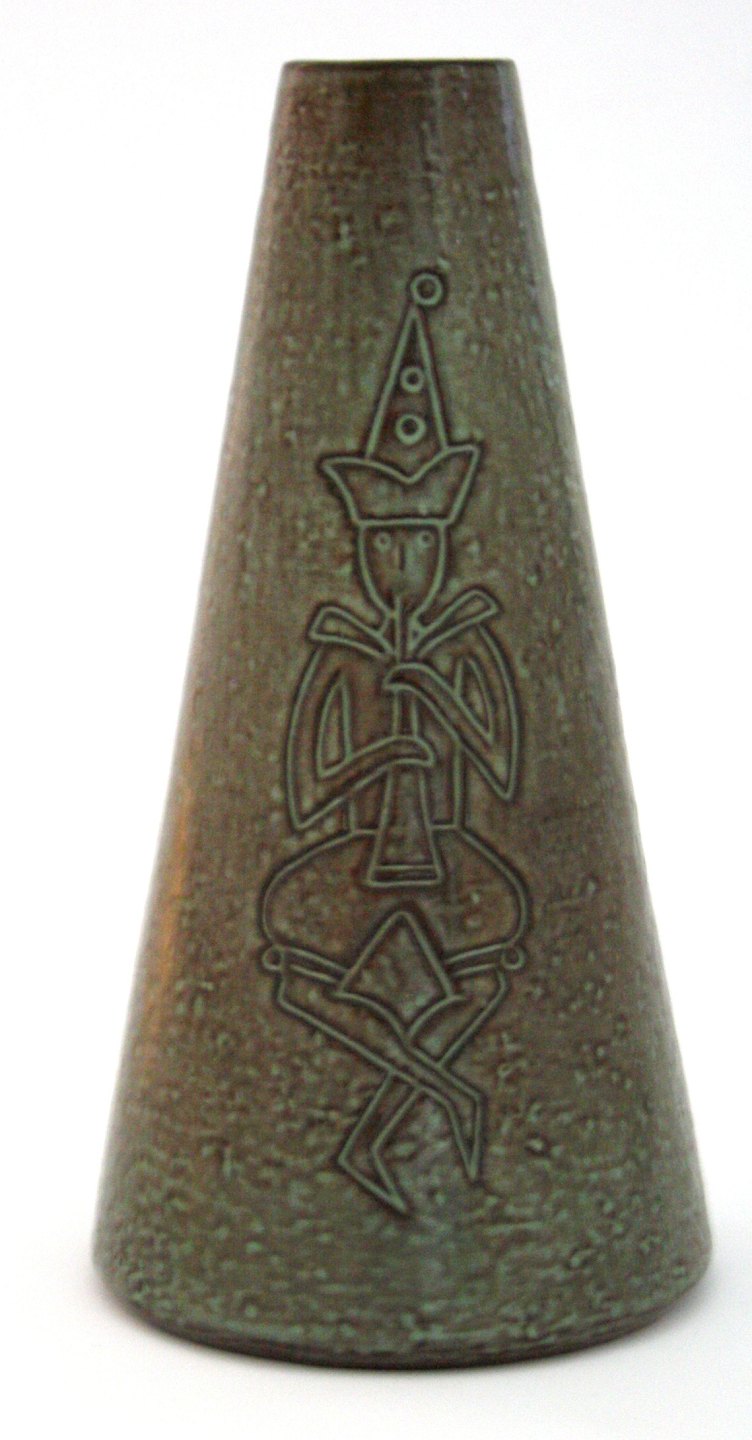 Knapstrup, Bolero serien designet af Pjotr Baro i 1960. Vase med fløjtespiller og Guitarspiller. Højde 20,5 cm. Diameter bund 10,5 cm. Flot stand. Pris: SOLGT