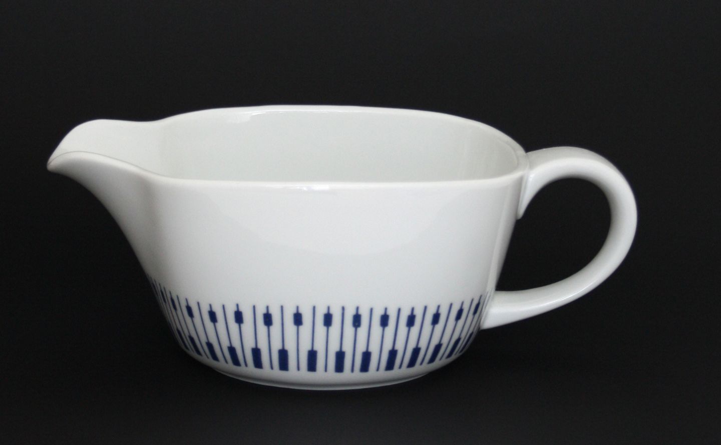 Lyngby porcelæn, Dan-ild 64, Tangent. Designet af Bent Severin i 1963. Lanceret under sloganet fra ild til bord. Sovsekande. Højde 7 cm. Længde 19 cm. Bredde 11,5 cm. Perfekt stand. Pris: SOLGT