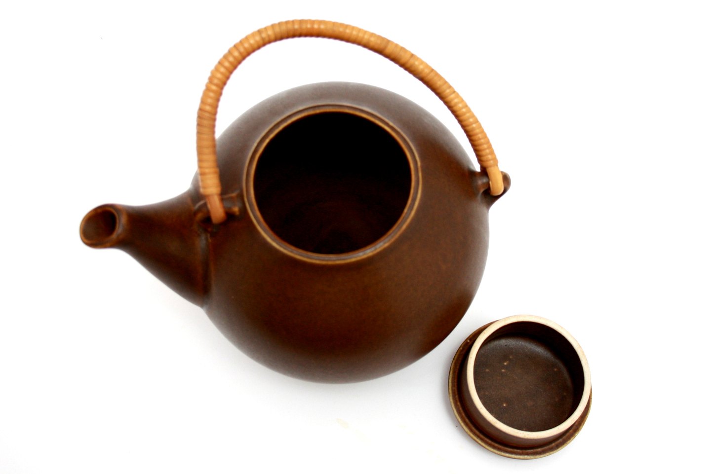Arabia, Finland, Tekande i brun harepelsglasur med basthank, model GA1. Designet af Ulla Procopé i 1953. Højde uden hank 15 cm. Længde 21,5 cm. Perfekt stand. Pris: SOLGT