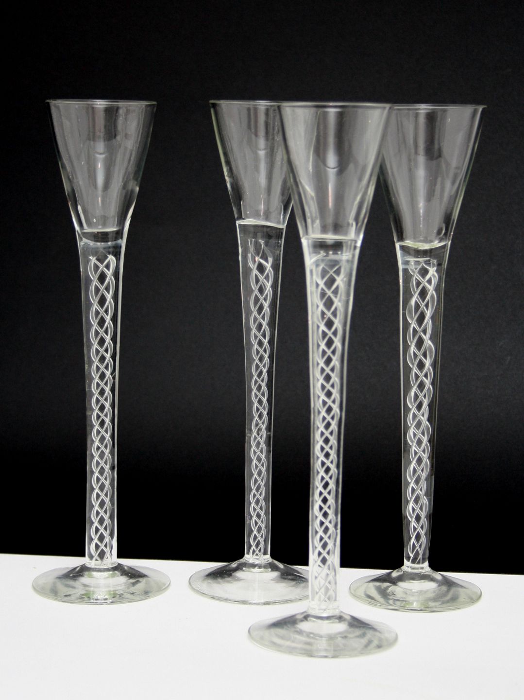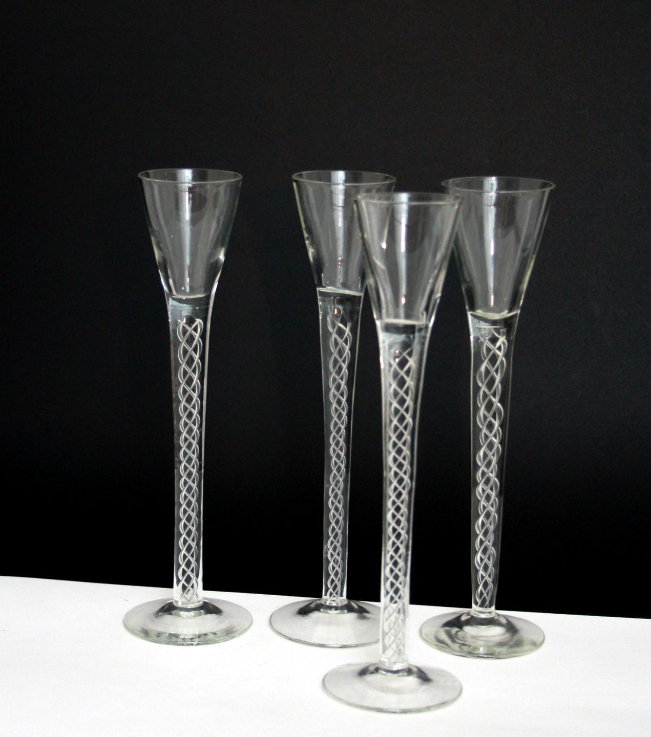 Snapseglas med indvendig snoning. Højde 22 cm. Øverste diameter ca. 5 cm. Pris: SOLGT