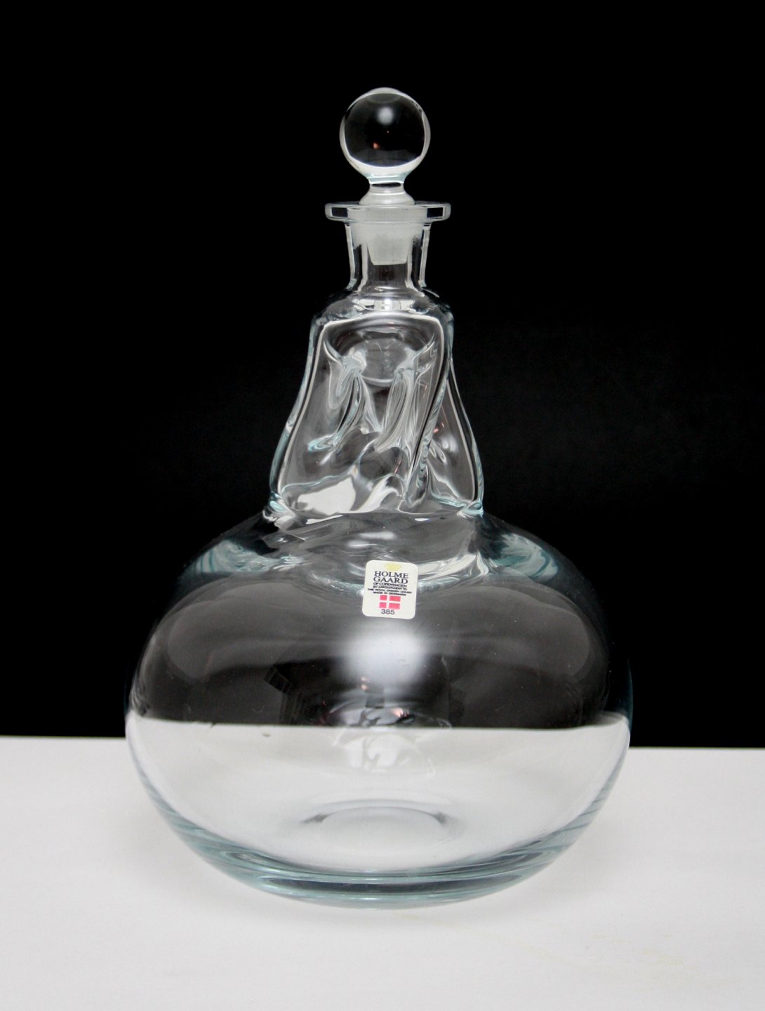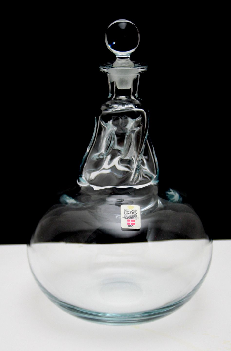 Holmegaard, Mandøkaraffel fra serien Danske øer designet af Michael Bang i 1983. Højde med prop 20,5 cm. Diameter 13 cm. Pæn stand. Pris: SOLGT