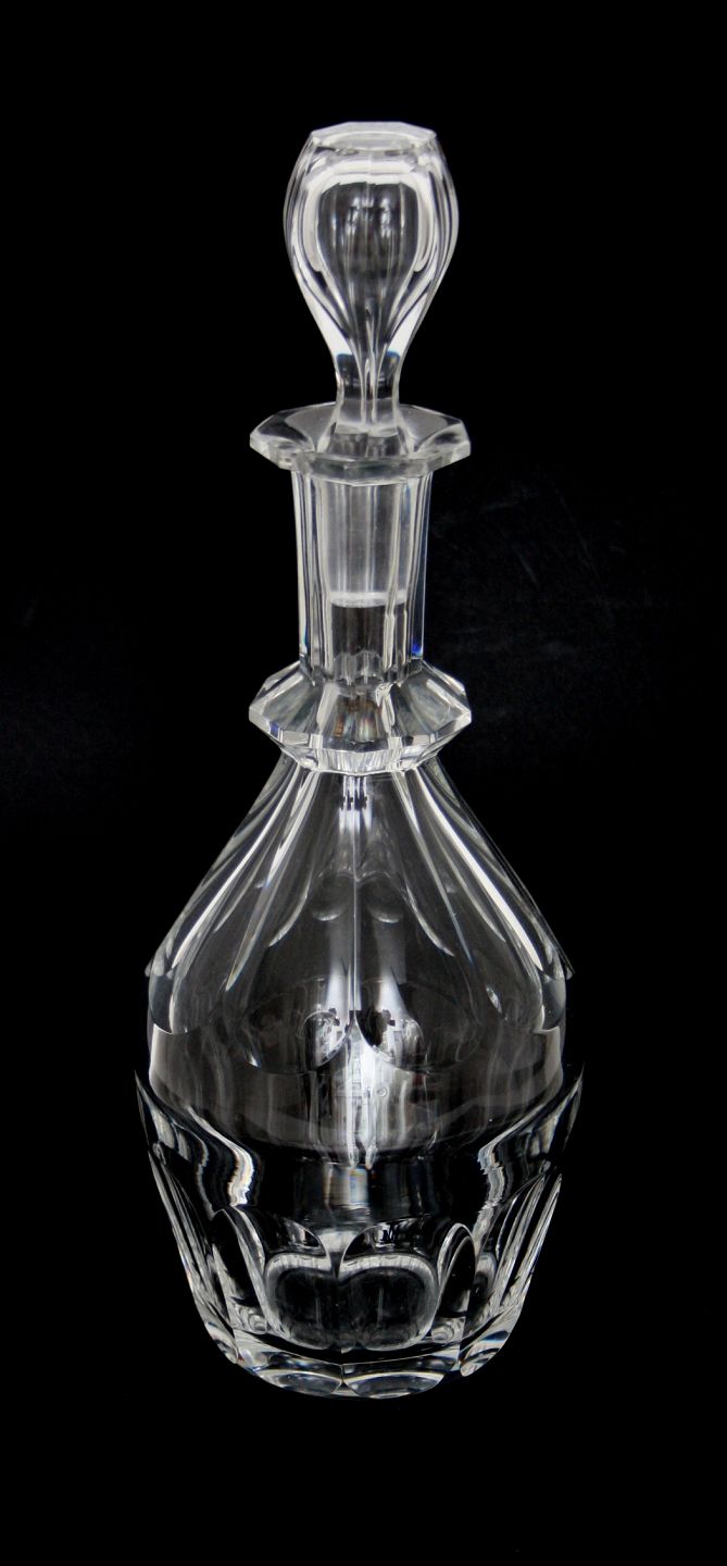 Krystal karaffel med oliveslibninger og krave, samt slebet hals. Proppen er slebet og hul indvendig. Højde 30 cm. Flot stand. Pris: SOLGT