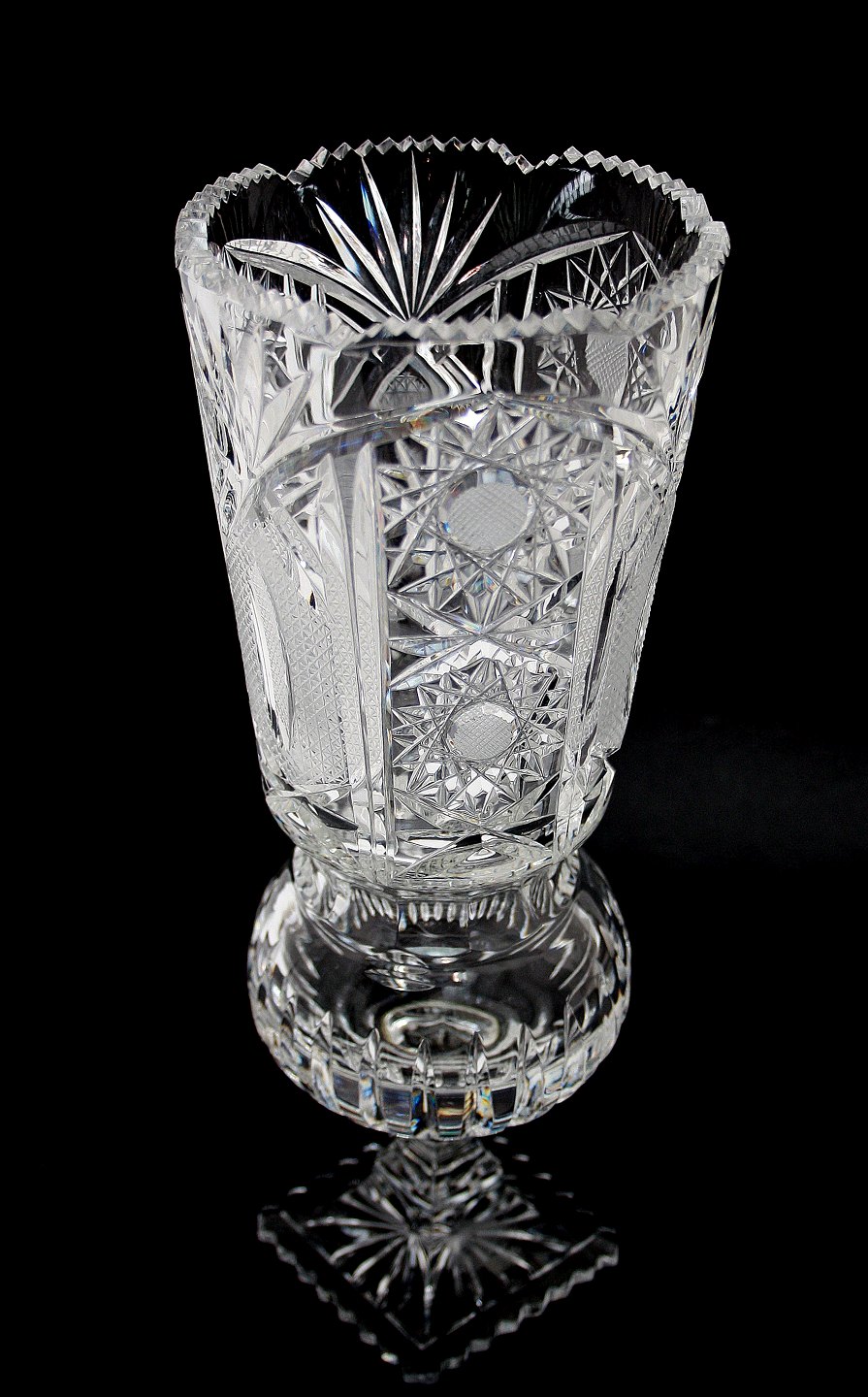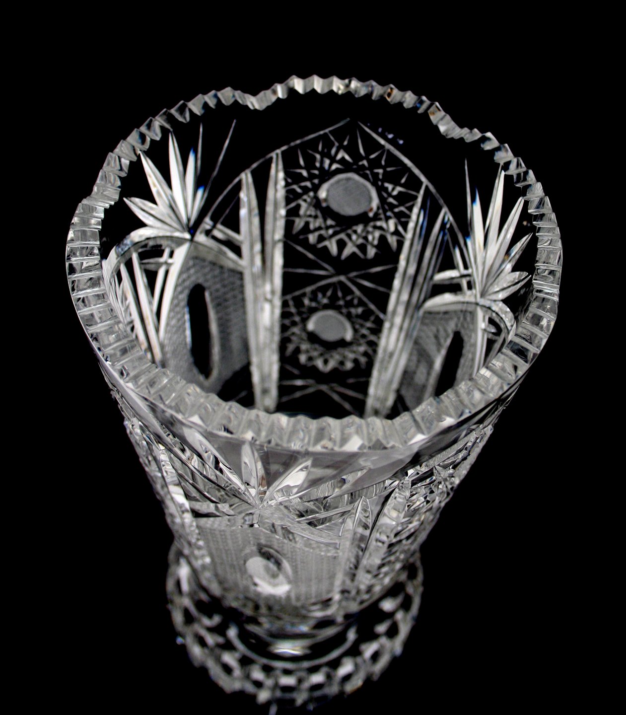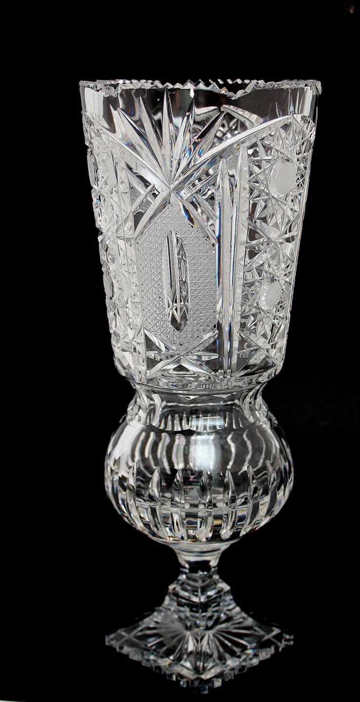 Bøhmisk krystal høj klar vase i perfekt stand. Højde 32 cm. Øverste diameter 12 cm. SOLGT