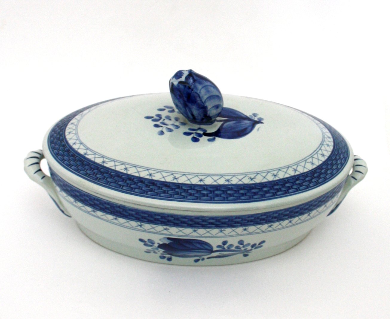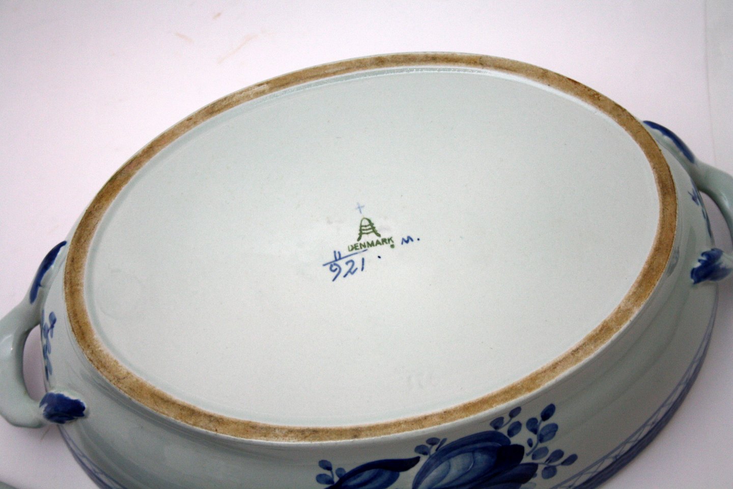 Oval terrin med låg. Nr. 11/921. Længde 30 cm. Bredde cm. Højde med låg 14,5 cm. Flot stand. Pris: SOLGT