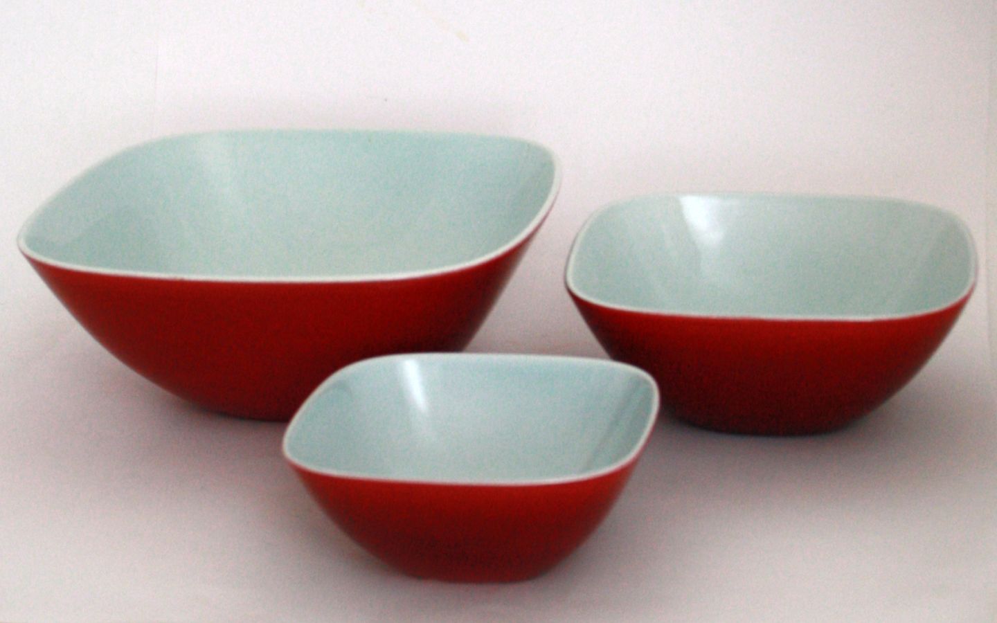 Rørstrand, Gratina Skåle, designet af Gunnar Nylund. Produktion 1954-1965 Stor skål. Højde 8,5 cm. 22x22 cm. Pris: SOLGT Mellem skål. Højde 7 cm. 17x17 cm. Pris: SOLGT Lille skål. Højde 5,5 cm. 13x13 cm. Pris: SOLGT