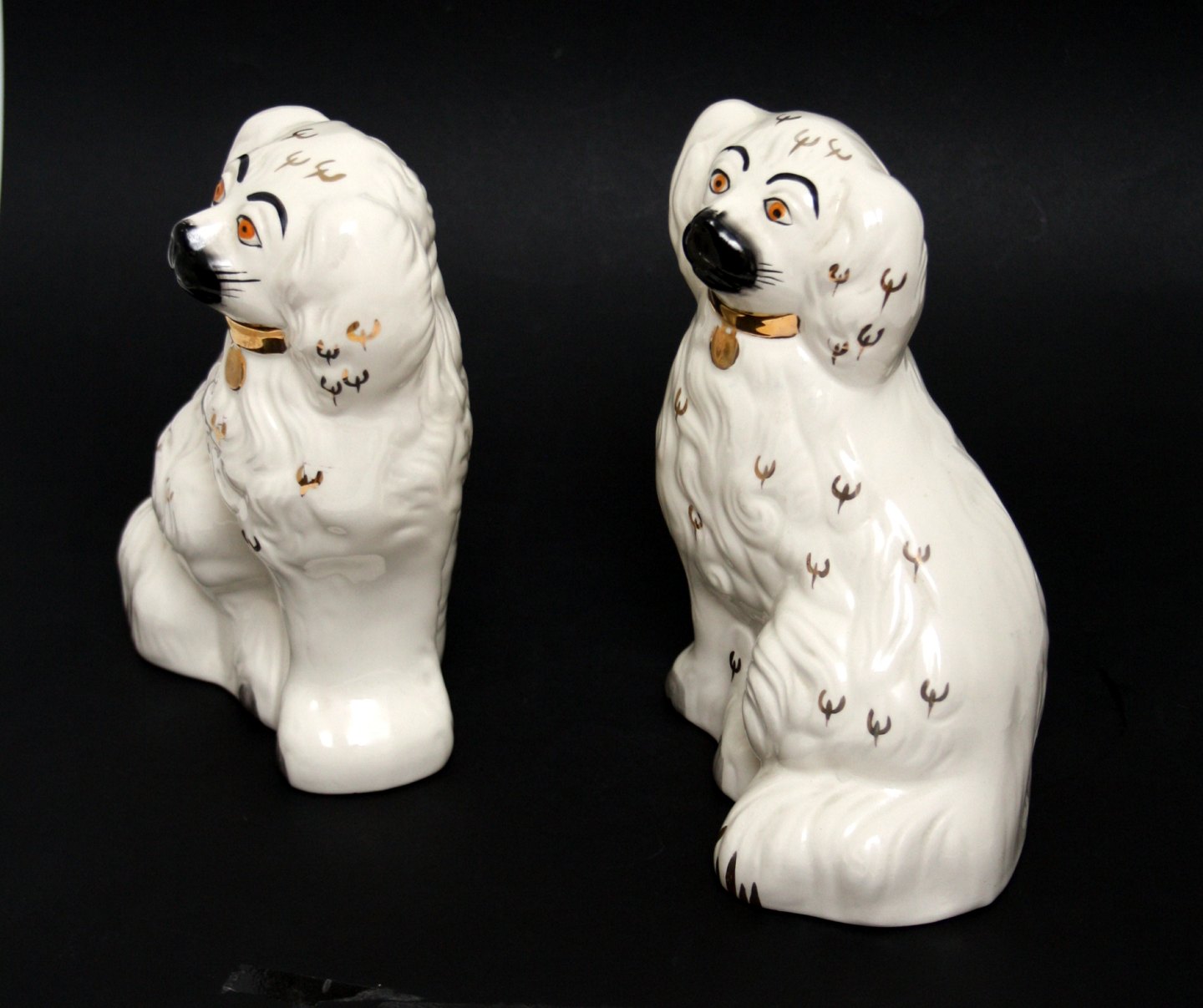 Staffordshire, Beswick, Skipperhunde/sømandshunde/kaptajnshunde Cocker Spaniels med guld. Fajance 1378-5. Højde 20,5 cm. Flot stand. Pris: SOLGT