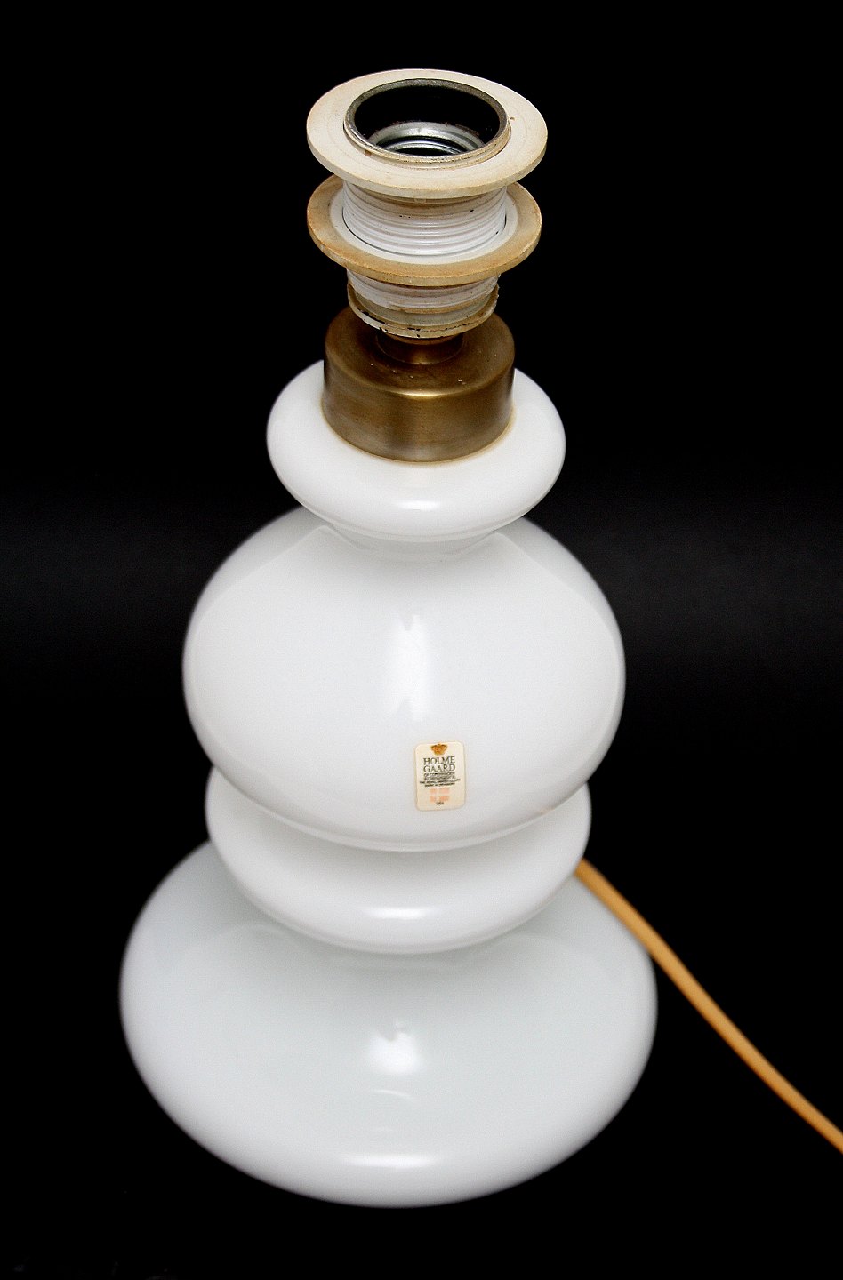 Holmegaard, Laura bordlampe opalinehvid glas. Designet af Per Lütken i 1978 fremstillet på Fyens Glasværk. Højde 31,5 cm. Ledning misfarvet gul. Pris: SOLGT