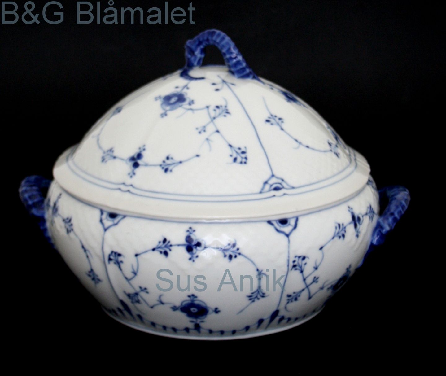 Bing & Grøndahl, Blåmalet (Musselmalet. Terrin med låg. Produceret 1915-1948. Diameter 22 cm. Højde 17 cm. I. sortering. Pris: SOLGT