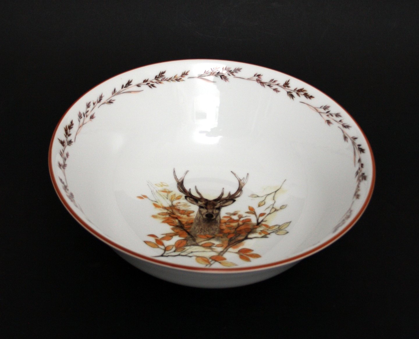 Jagtstellet designet af Mads Stage for Imerco. Kartoffelskål. Kronvildt motiv. Diameter 22,5 cm. Højde 7 cm. Pris: SOLGT