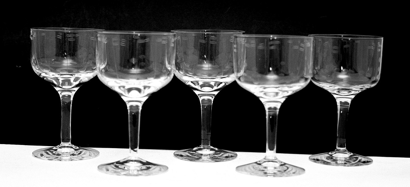 Holmegaard, Symfoni. Glat stilk, kumme med slebne noder. Designet af Per Lütken i 1960, udgået af produktion 1970.