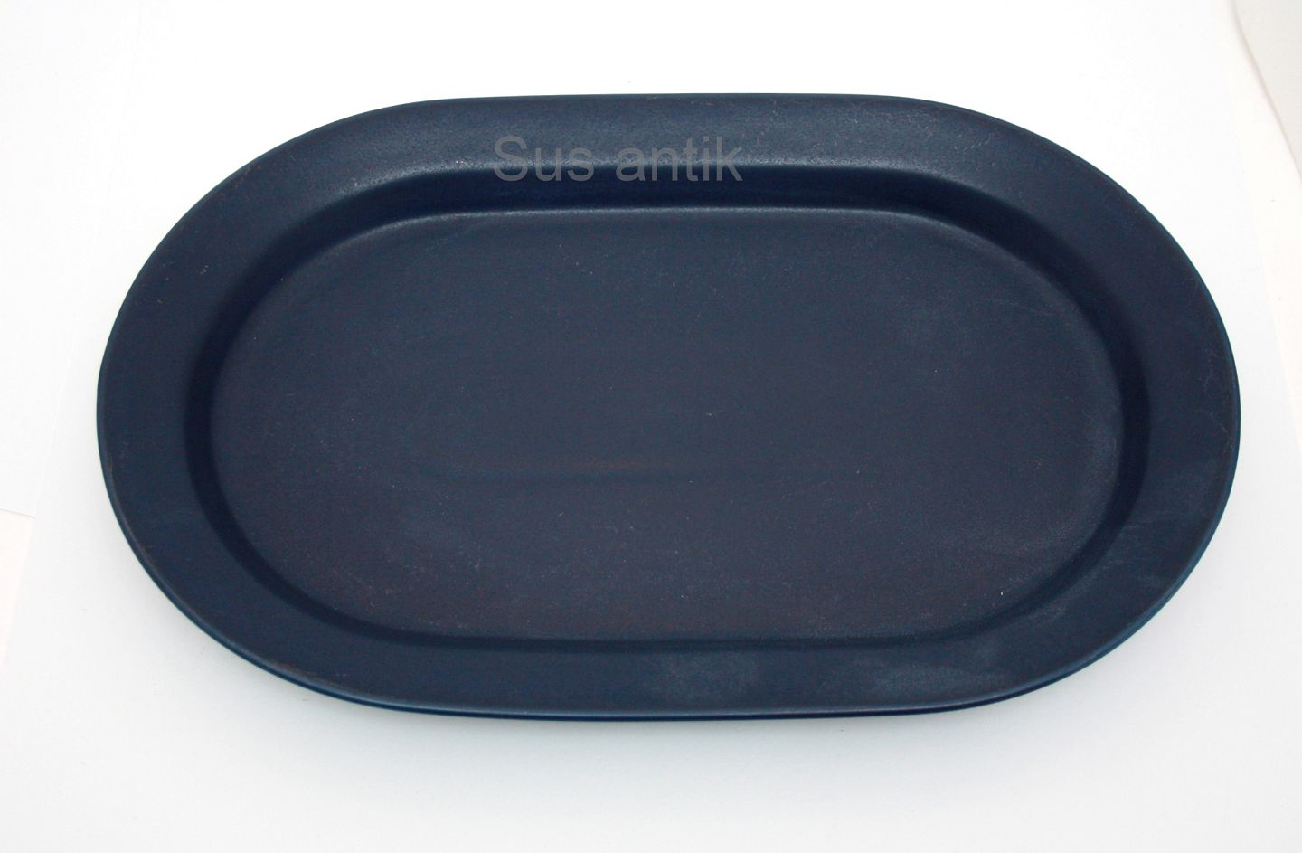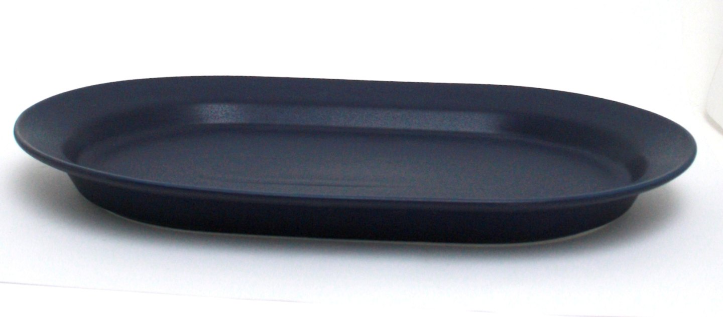 Arabia, Blues, Stegefad. Designet af Heikki Orvola i 1992 og produceret frem til 1998. Stellet er i en mat, mørk navy blue glasur. Det er owen, dishwasher and freezer proof. Længde 36,5 cm. Bredde 23,5 cm. Pris: SOLGT