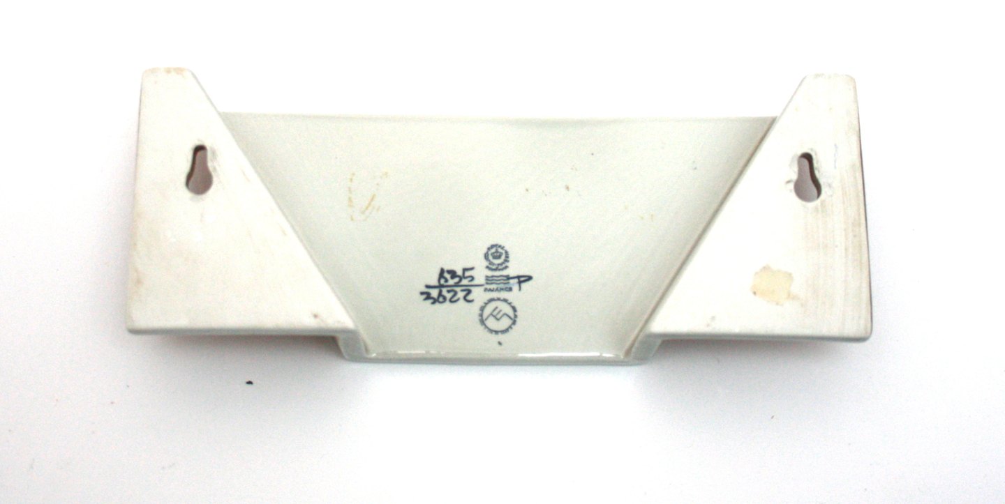Royal Copenhagen, Kunstfajance, Kaffefilterholder, designet af Ellen Malmer. Form.nr. 635/3622. Længde 19 cm. Bredde 7 cm. Dybde 23,5 cm. I. sortering. Pris: SOLGT