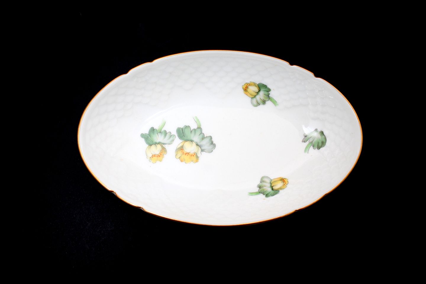 Bing & Grøndahl, Erantis, Lille dyb fad. Nr. 38. 18 x 11,5 cm. Højde 3,5 cm. Pris: SOLGT