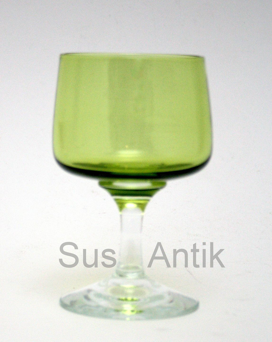 Hvidvin med grøn kumme. Højde 11,5 cm. Diameter 6,4 cm. Pris:
