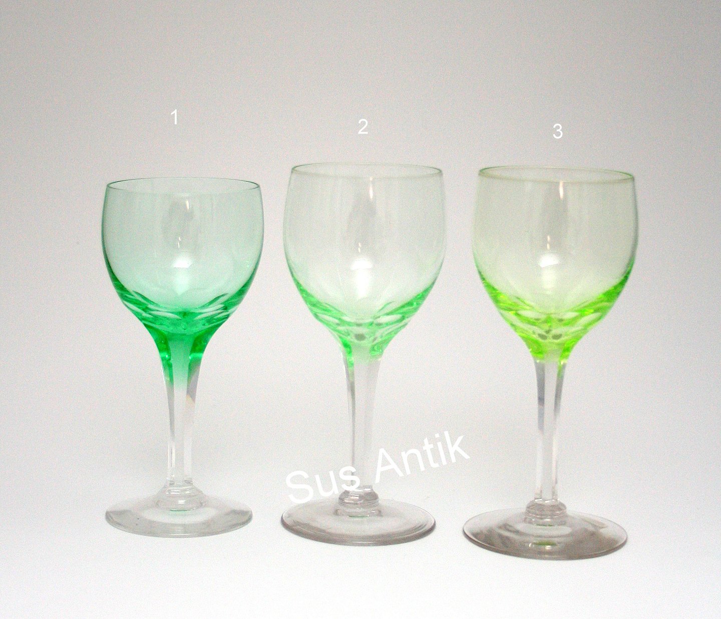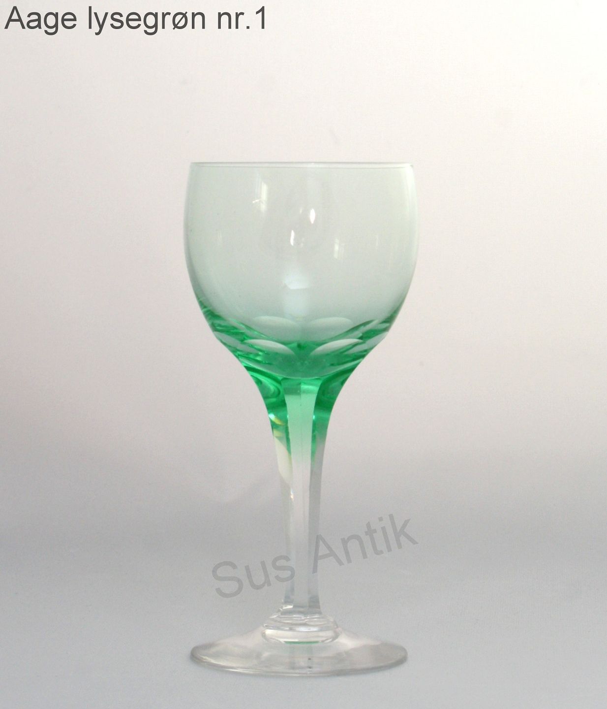 Aage glas, Holmegaard glasværk 1916-50. Hvidvin, lysegrøn, højde 13,5 cm. Dette glas er nr. 1 på ekstra foto. Almindelig aldersrelateret brugsslid. Pris: SOLGT