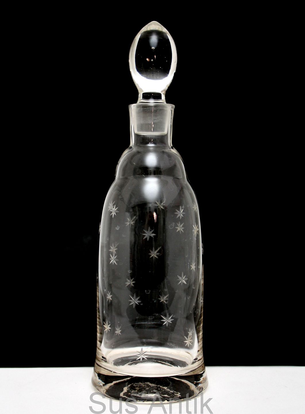 Lyngby glas, Urania serien, Karaffel med prop med slebne stjerner. Højde 29 cm. Fin stand. Sjælden. Pris: SOLGT