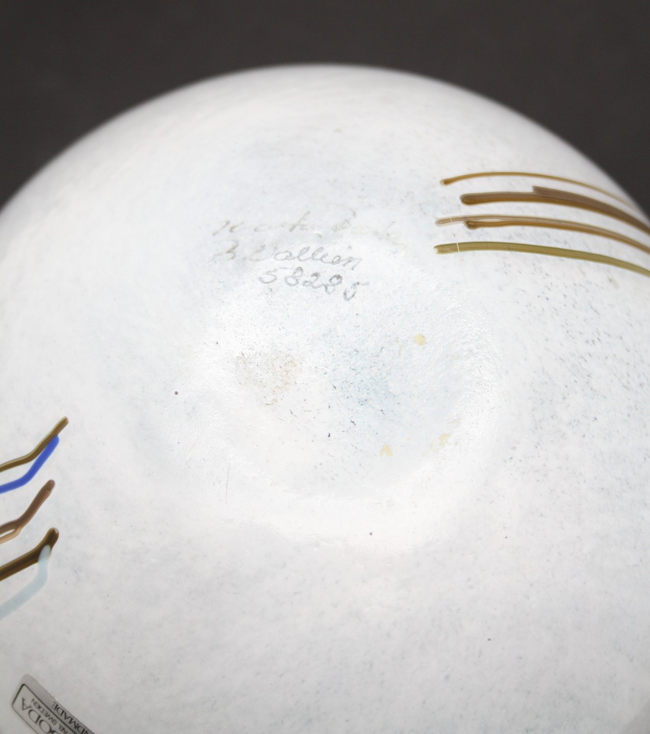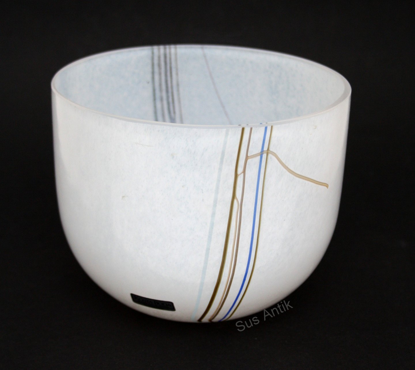 Kosta Boda, Sweden, Rainbow kunstglas urtepotteskjuler. Designet af Bertil Vallien. Signeret med navn og nr 58285. Højde 11,3 cm. Diameter 14 cm. Pris: SOLGT