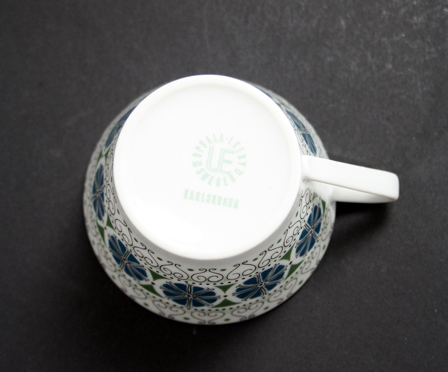 Uppsala/Ekeby LE, Karlskrona, Sweden, Kaffekop med underkop. Højde 5,6 cm. Diameter 8 cm. Pris: SOLGT