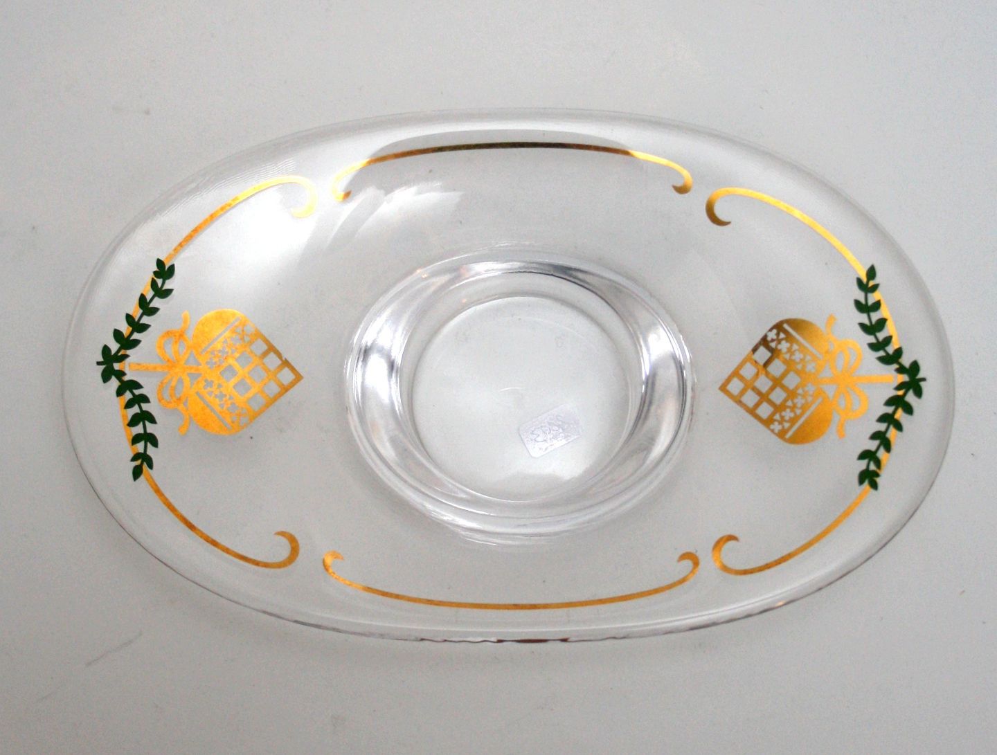 Holmegaard, Golden Christmas, Kalenderstage 2003, Guldhjerter og grene. Design Jette Fröhlich, Michael Bang, Peter Svarrer. Længde 19 cm. Højde 3,5 cm. Pris: SOLGT