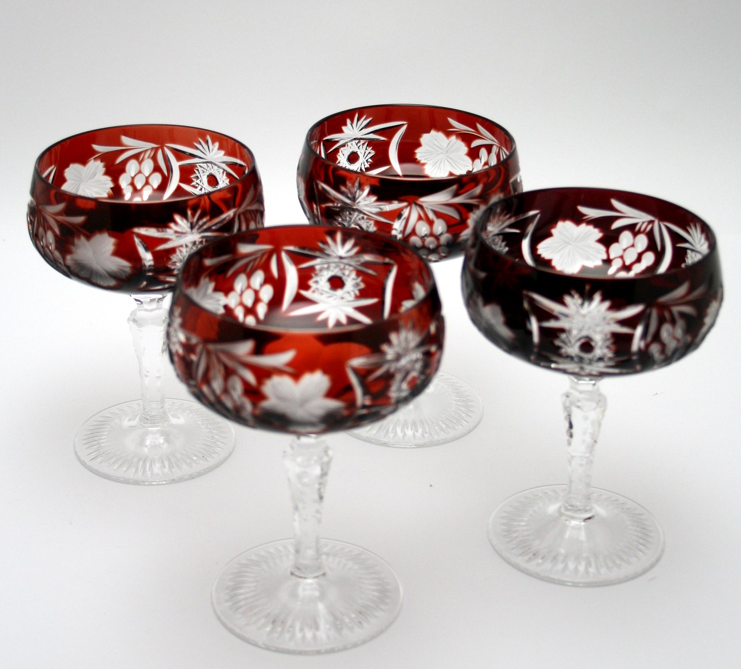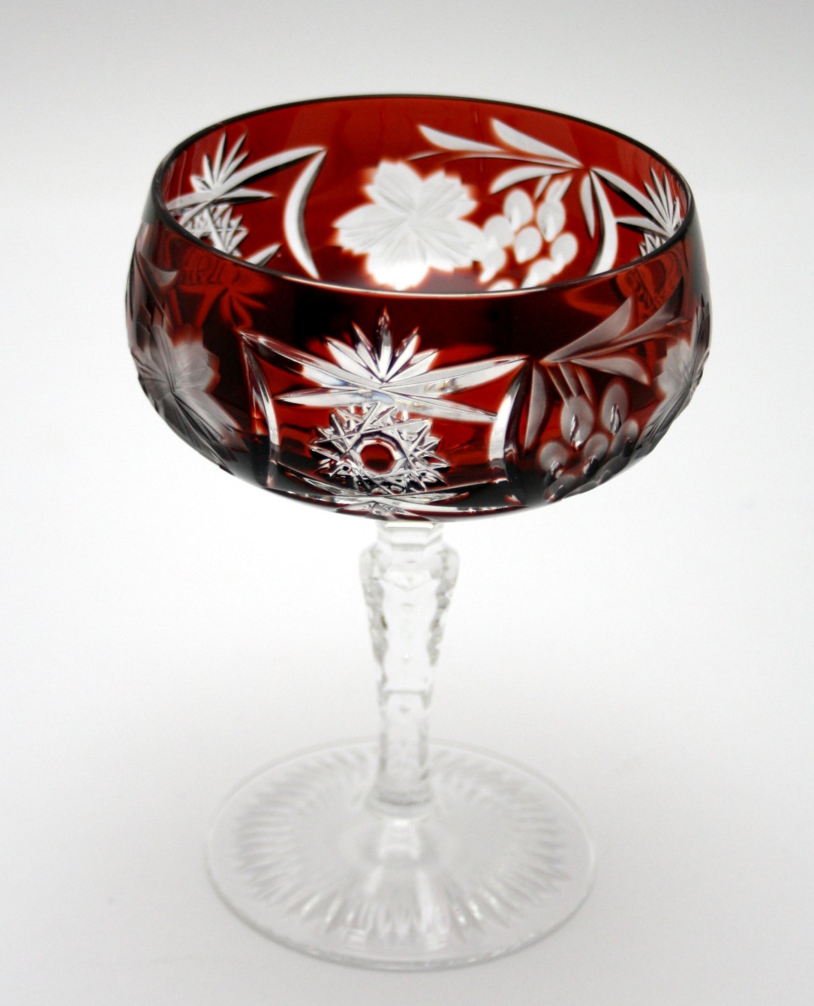 Bøhmisk krystal Champagneskåle. Slebet kumme, stilk og fod. Højde 13,5 cm. Skålens diameter 9 cm. Pris: SOLGT