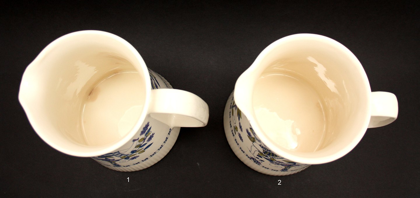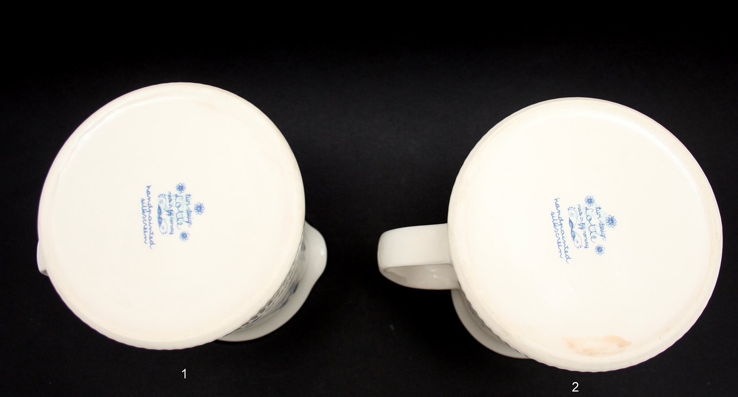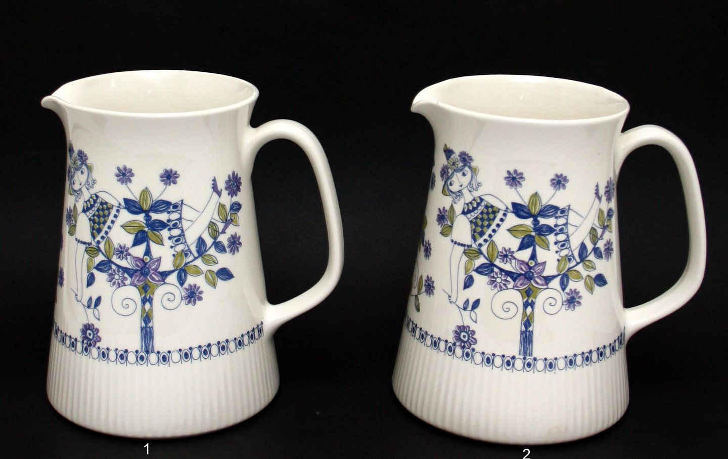 Figgjo Flint, Turi-design, Norway, Lotte. Vandkande. Designet af Turi Gramstad Oliver. I produktion fra 1962 til 1985. Højde 16,5 cm. Længde 15,5 cm. Begge kander har lidt brun misfarvning i bund ellers fin stand. Vælg mellem kande 1 og kande 2. Pris: SOLGT