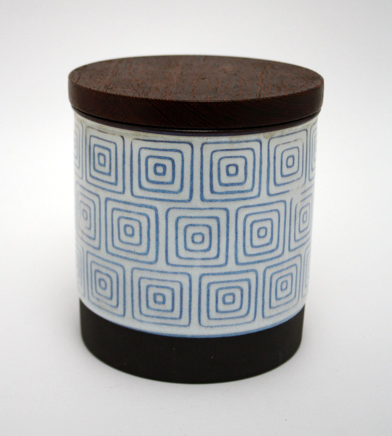 Krukke med palisanderlåg. Nr. 3157. Højde 13,5 cm. Diameter 12 cm. Flot stand. Pris: SOLGT