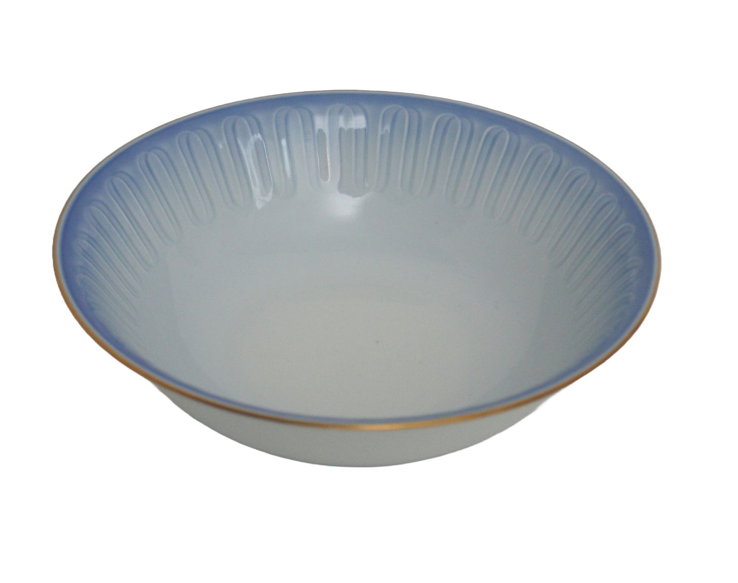 Bing & Grøndahl, Ballerina med guldkant, lyseblåt porcelæn. Lille skål. Nr. 574. Højde 5 cm. Diameter 17 cm. Pris: SOLGT