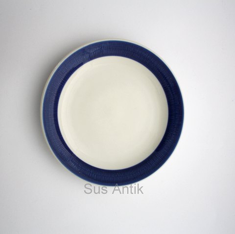 Ipsen Enke vase med blå glasur med rillet hals, design Volmer Bahner 1939. højde 14,5 cm, diameter 10,5 cm.Signeret IPE X 45