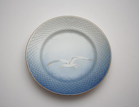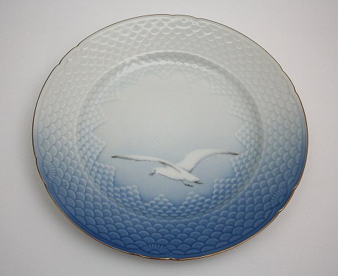 Bing & Grøndahl, Måge med guld. Kagefad med ører. Nr. 101. Diameter 25,5 cm. Pris: 375 kr. stk. Lager: 1