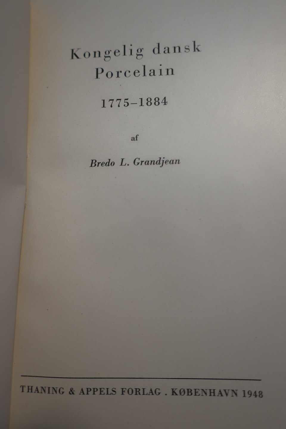 Kongelig Dansk Porcelain - 1975-1884 Af Bredo L. Grandjean Thanning & Appels Forlag 1948 Sideantal 98 God stand Varenr.: Hy5