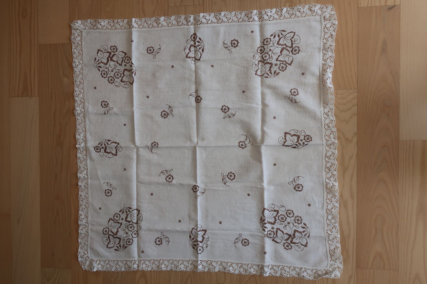 Old table cloth With embroidery in colours - made by hand About 100cm x 98cm In a good condition Articleno.: DG110-4-42442