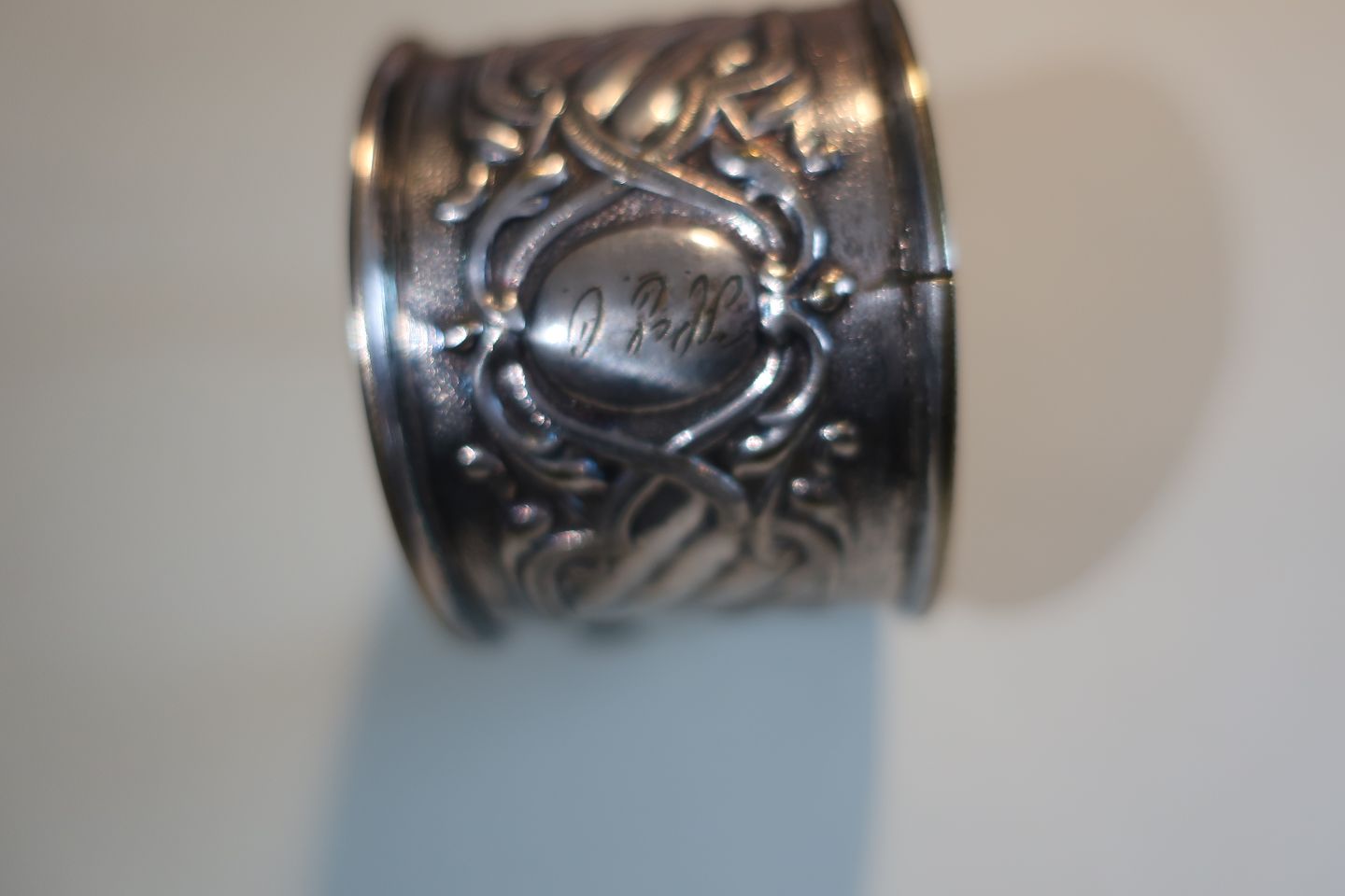 Napkin ring made of silver With initials Diam: 5cm W: 3,5cm In a good condition, but with a little crack at the rim (please look at the photo) Articleno.: 4-6165