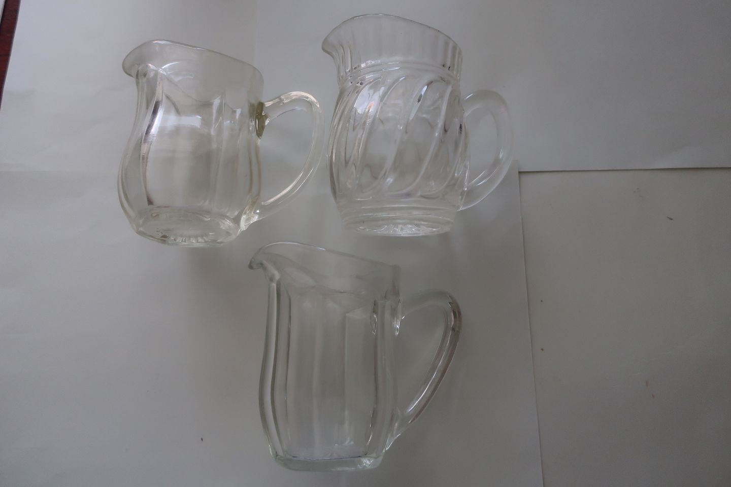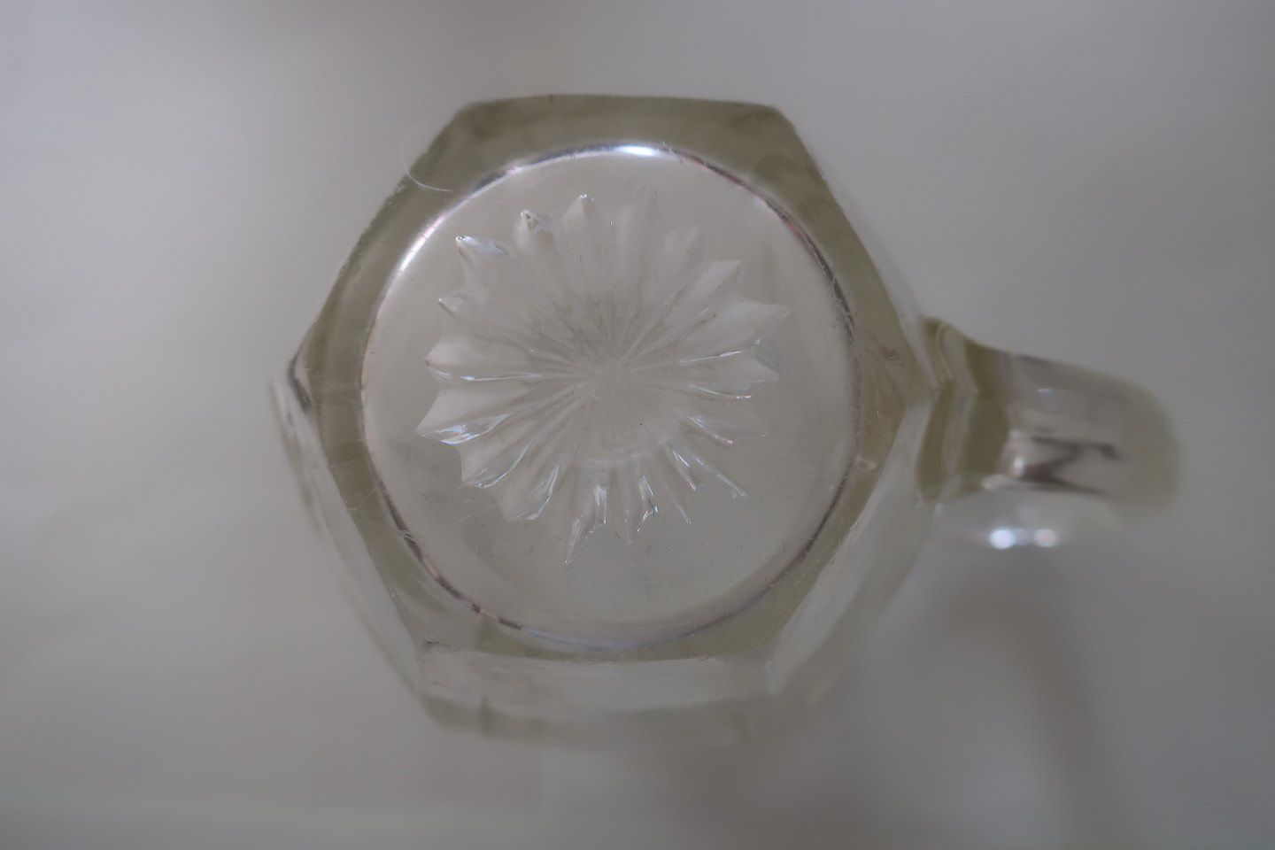 Gamle flødekander af glas Fra ca. 1930 Med stjerne i bunden H: 10cm Kan købes enkeltvis God stand Varenr.: KM1006